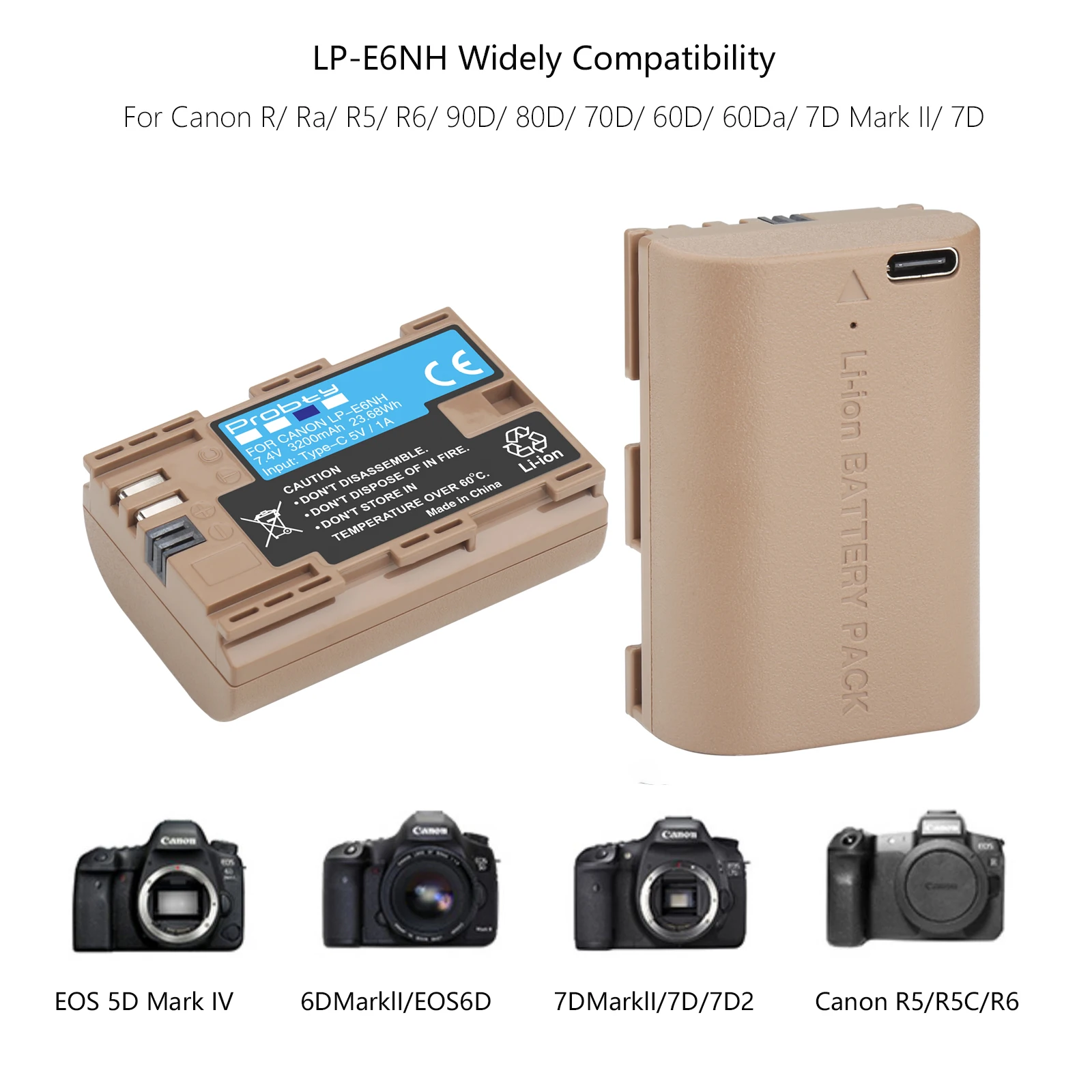 Comprar Batería recargable LP-E6NH con entrada tipo C para Canon EOS R R5 R6 90D 60D 70D 80D 5D IV 6D 7D mark II 6D Mark II 5D Mark II