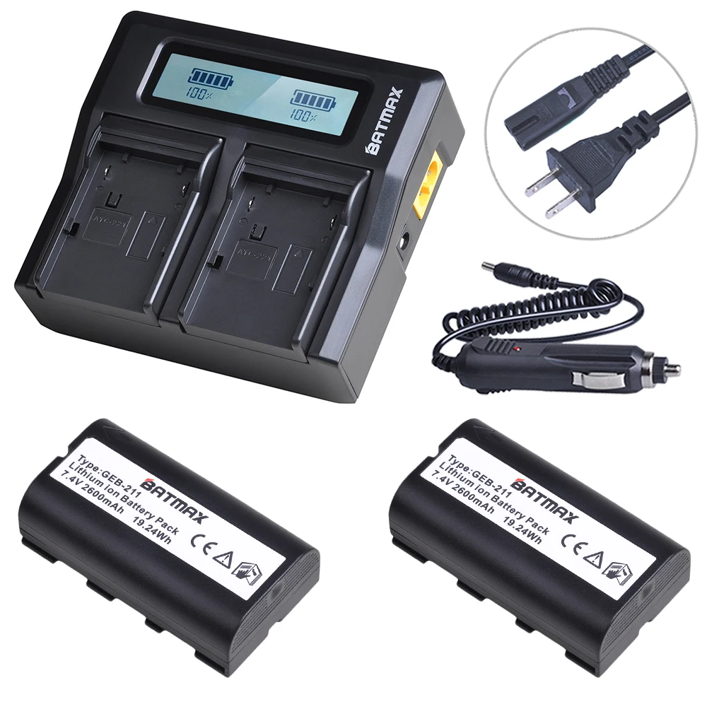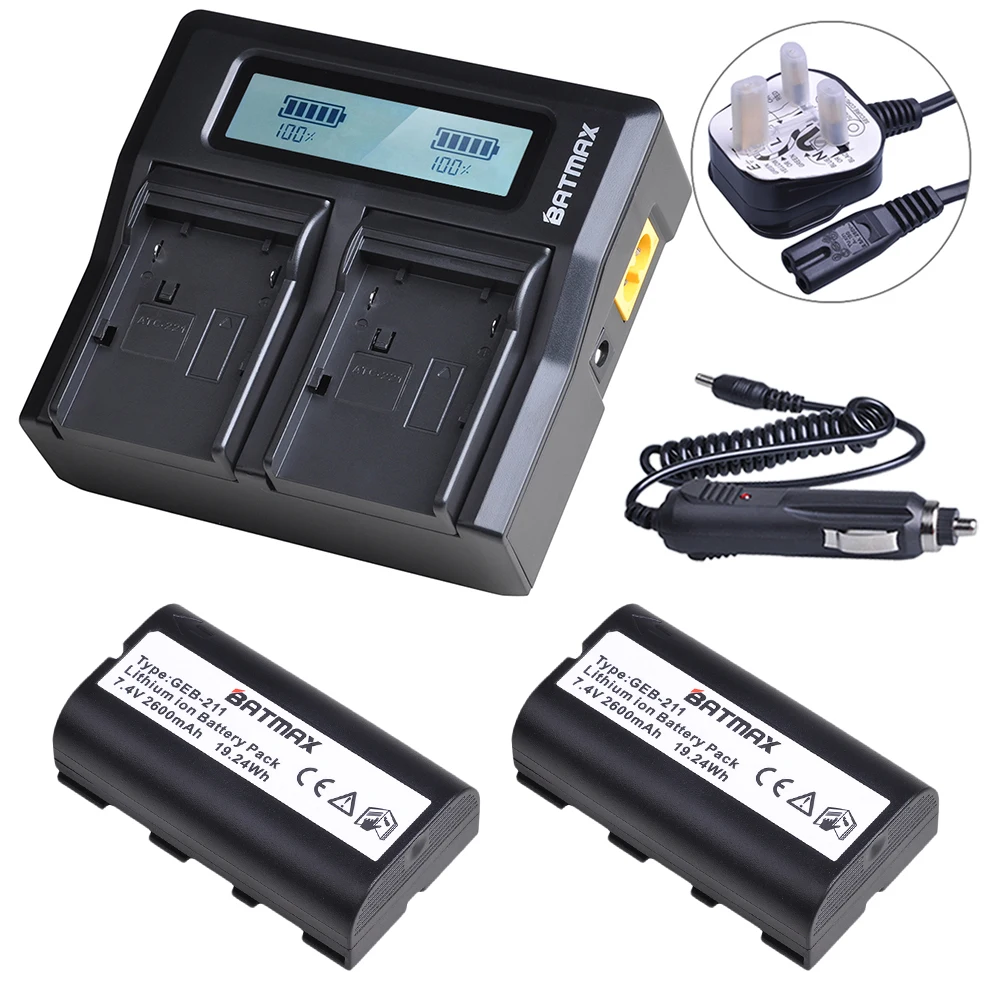 Batmax 2600mAh GEB211 GEB212 batería de iones de litio + cargador dual LED rápido para estación total TPS1200,ATX1200,GPS1200,GRX1200,RX1200,TC1200