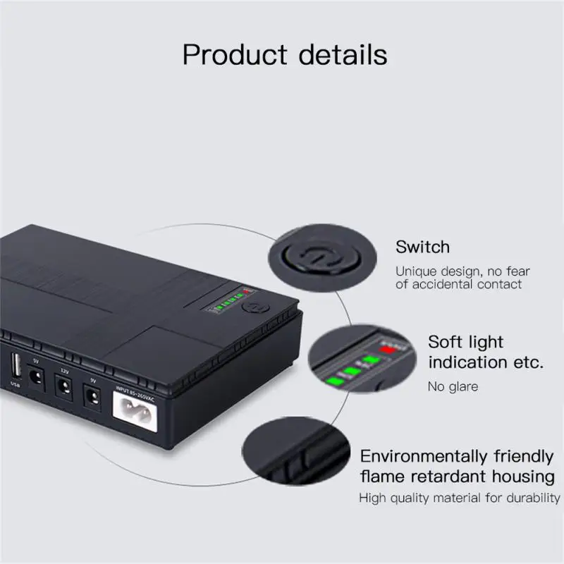 Comprar Batería de respaldo DC UPS, 10400mAh, 5V, 9V, 12V, 2A, 15V, 24V, 1A, salida, fuente de alimentación ininterrumpida, 85-265V, enchufe de la UE