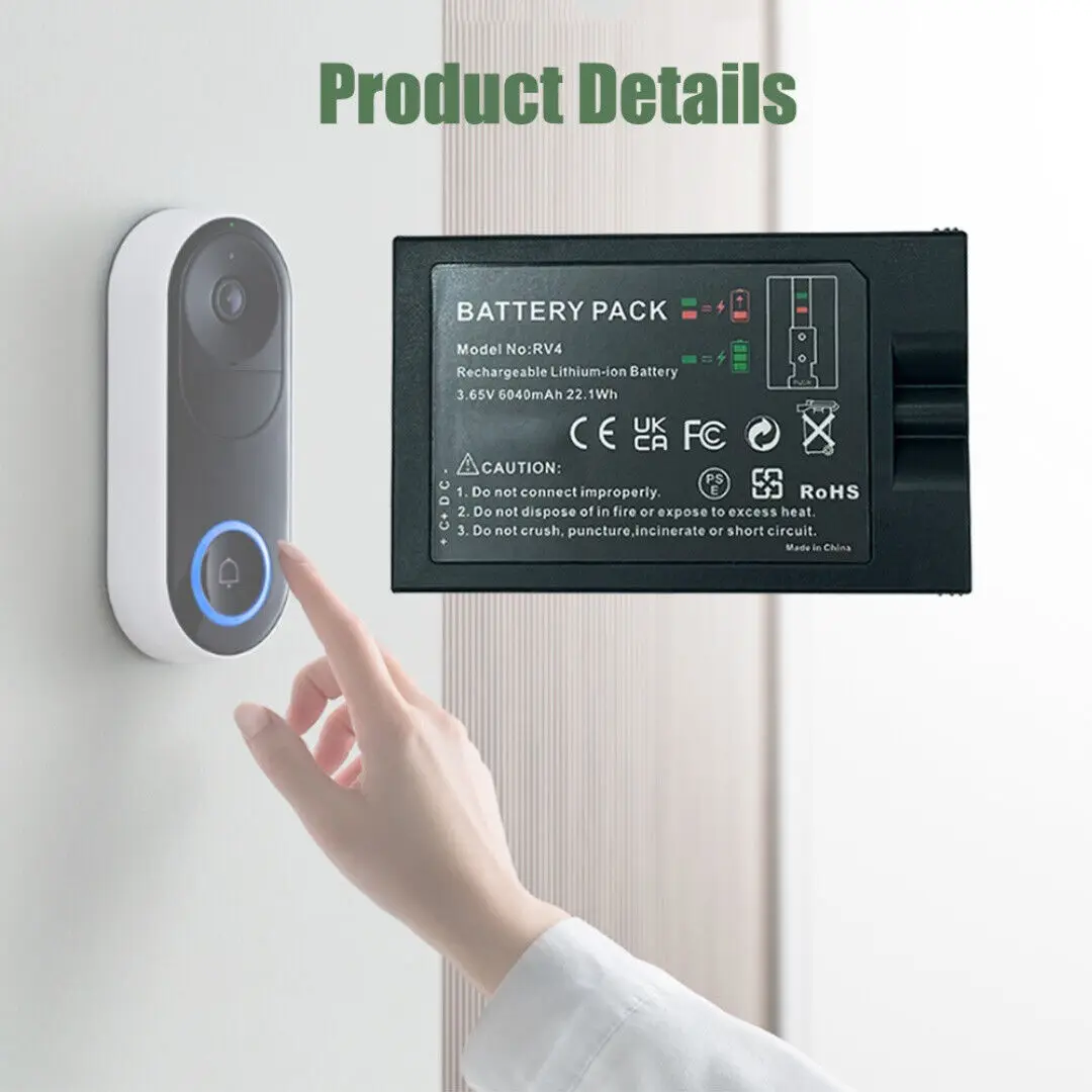 1. Batería de timbre con puerto de carga micro USB incorporado, se puede cargar directamente con un cable micro USB.2. Con 2 indicadores LED, el rojo, muestra la carga, el verde muestra la carga completa.3. Nuevo Paquete de batería recargable de celdas de iones de litio Premium.4. Alta densidad de energía, vida extra larga, sin memoria5. Potencia extra, más tomas para tu timbre de timbre.Comprar Batería RV4 del timbre del anillo de 6040mAh 3,65 V para el timbre video 2/3/4, palillo del anillo encima de la leva solar substituye V4, cámara video de Bell de puerta