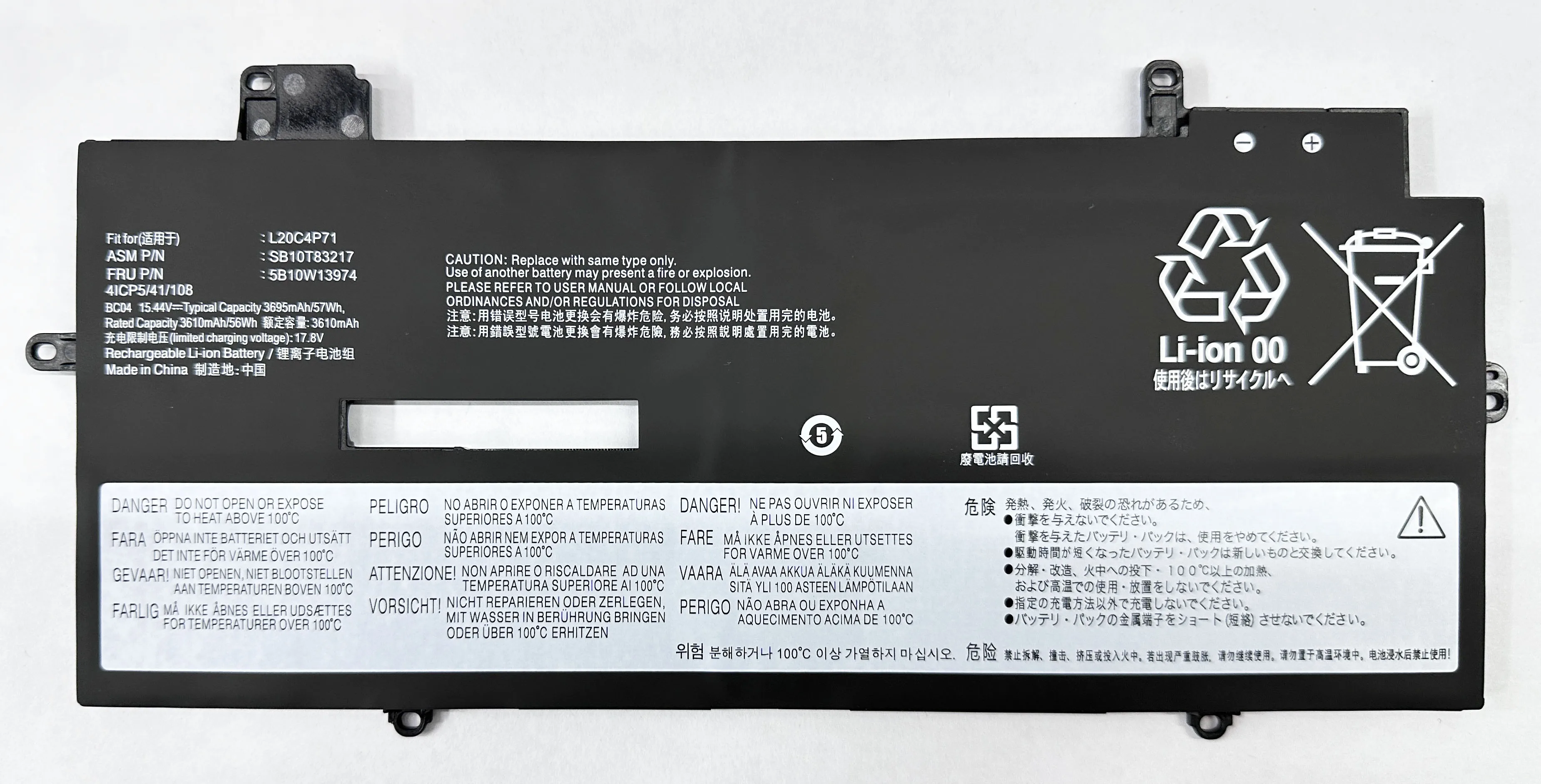 Capacidad: 3695 mAh/57 WHVoltaje: 15,44 VTipo de batería: Li-ionL20C4P71 SB10T83217 5B10W13974