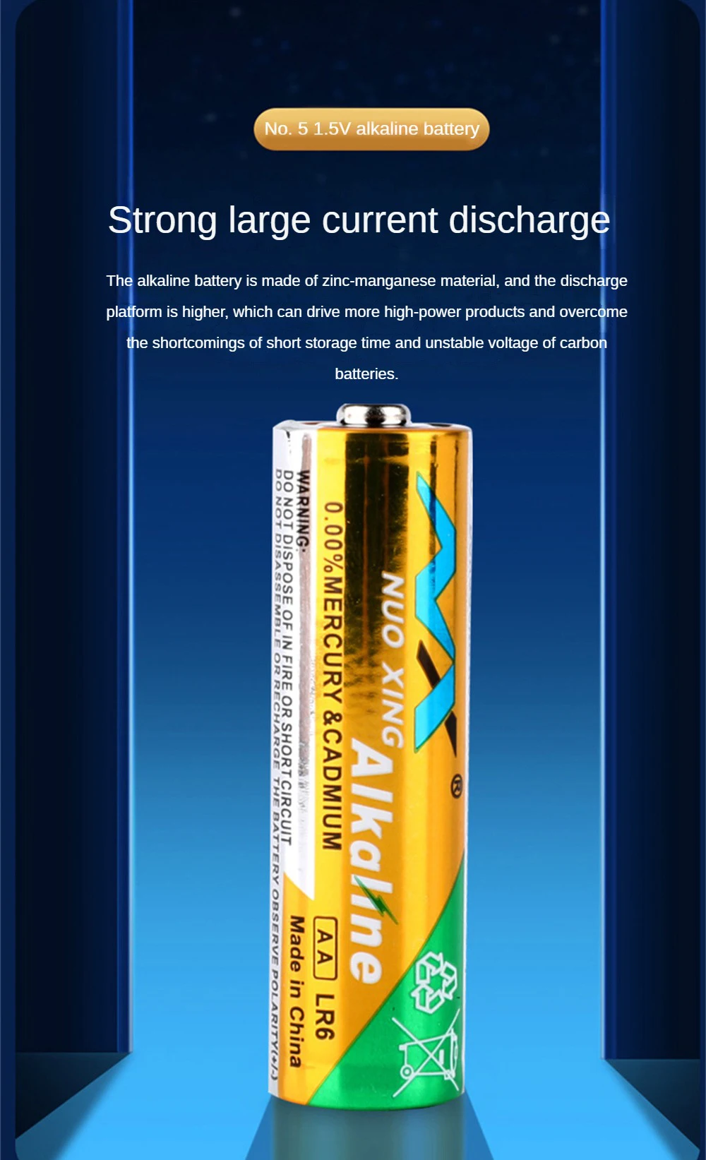 2. Las baterías alcalinas están hechas de material de manganeso de zinc, que tiene una plataforma de descarga más alta y puede impulsar productos de más alta potencia, superando las desventajas del corto tiempo de almacenamiento y el voltaje inestable de las baterías de carbono.