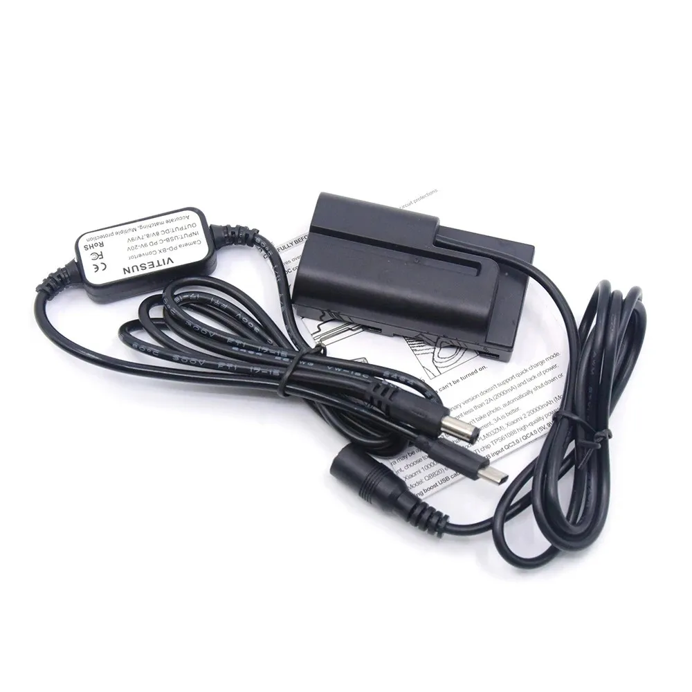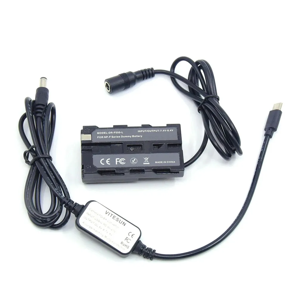 Batería simulada de reemplazo de batería simulada, acoplador de CC F960 F750 F770 + Cable de alimentación USB tipo C para varias luces de vídeo, BMPCC,Monitor, 1 unidad