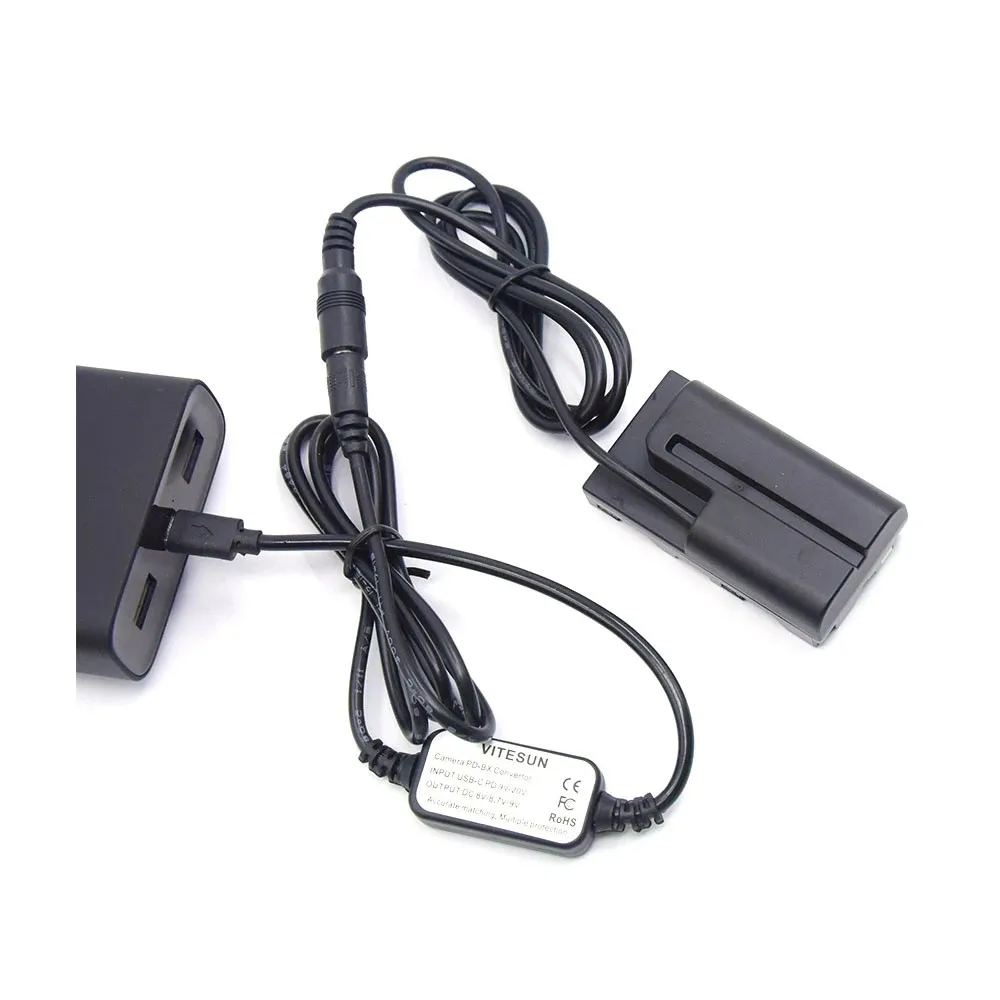 Este acoplador de CC está diseñado como una batería de Falso, generalmente funciona con un adaptador de corriente de 8V CC, es un sustituto de las baterías Sony F570 F750 F770 F960 F970 F980. Funciona para varias luces de vídeo, BMPCC, cámara de seguridad CCTV.