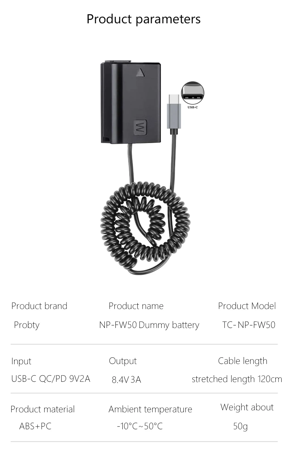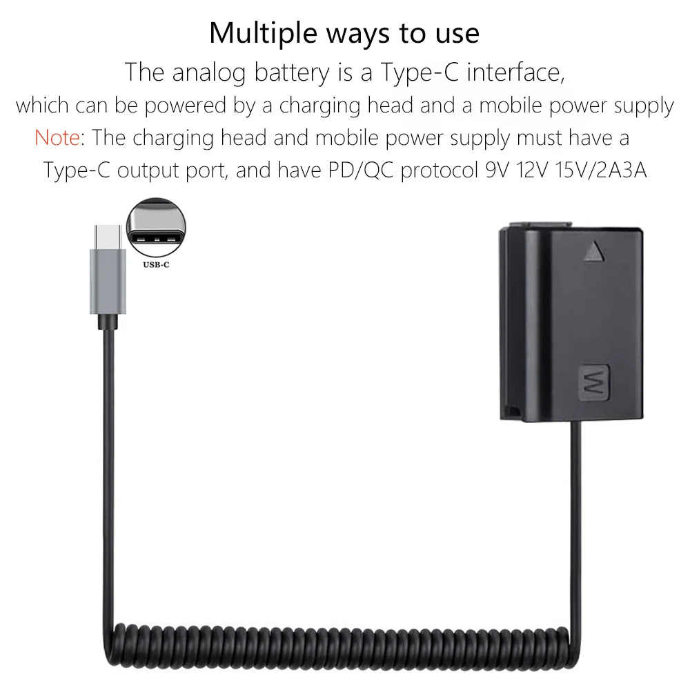 Comprar Batería simulada USB-C a ZV-E10 NP-FW50 para cámaras Sony Alpha A6000 A5100 A6100 A6300 A6500 A7 A7II A7S A7SII RX10 II IV