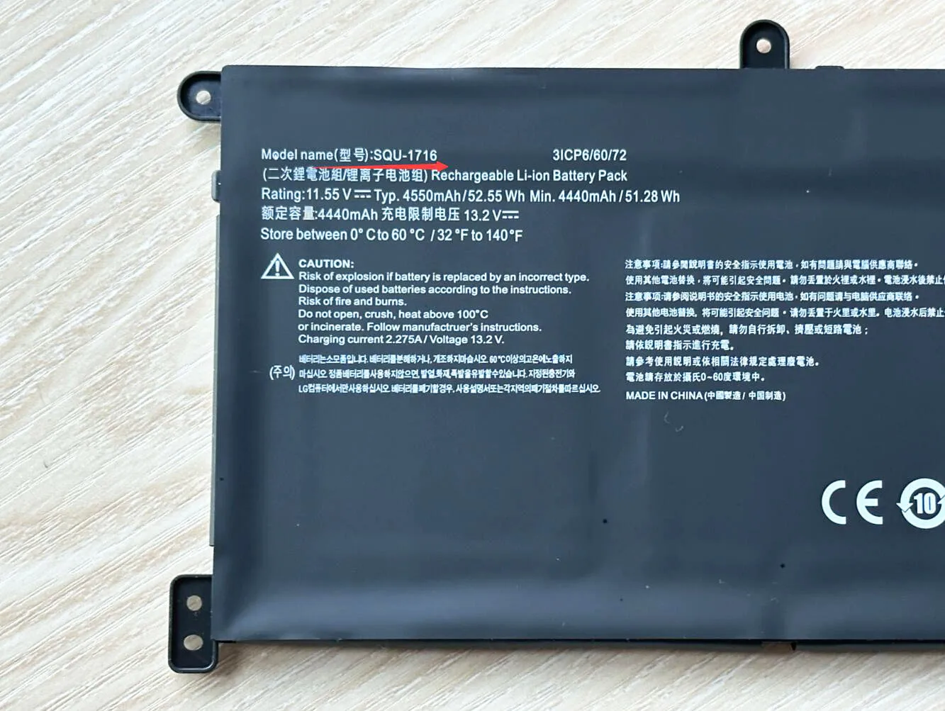 Comprar Batería de SQU-1716 para Hasee KINGBOOK U65A, QL9S04, 916QA107H, 916QA108H, 11,55 V, 4550mAh, 52.55WH, SQU-1717