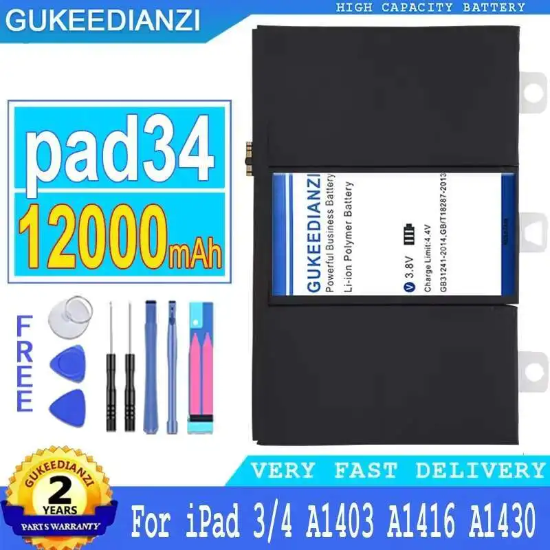 Comprar Batería para tableta Pad34 12000Mah para Apple Ipad 3 4 Ipad3 Ipad4 A1403 A1416 A1430 A1433 A1459 A1460 A1389