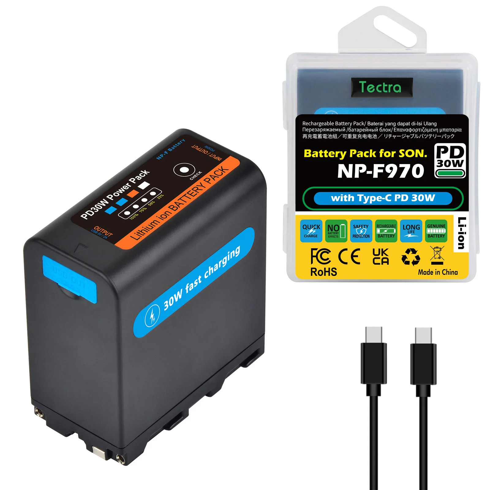 Comprar Batería Tectra NP-F970 de 10500mAh con puerto de carga rápida tipo C PD 30W para videocámara Sony Handycam, monitor, luz de vídeo LED