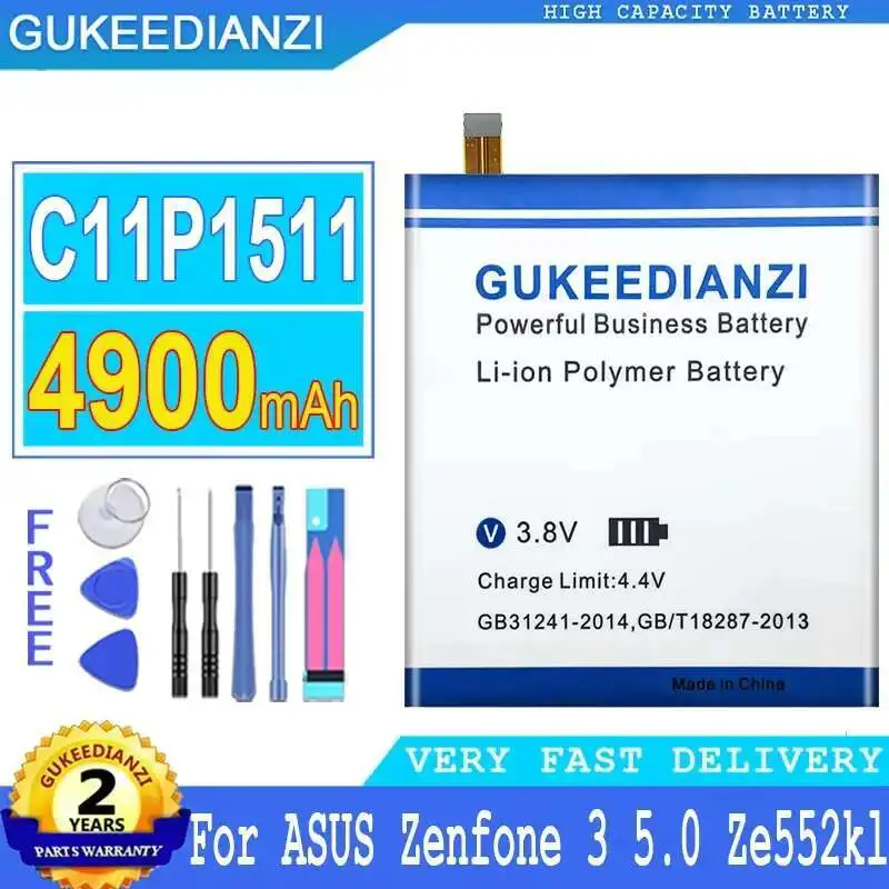 Batería de teléfono móvil de alta capacidad y eficiencia 4900mAh para ASUS Zenfone 3 5.0 Ze552kl Z012da Z012de C11P1511 (cable pequeño recto)