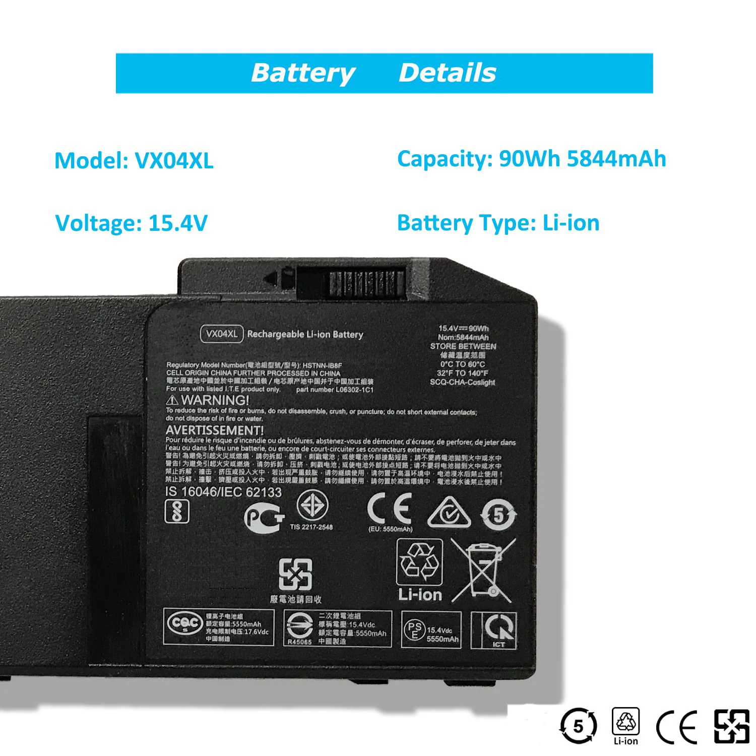 Comprar Batería VX04XL para ordenador portátil HP Zbook 15 G5 G6 Series 2YW99AV 2YX00AV 2ZC40EA 2ZC41EA 3AX02AV 3AX04AV 4QH14EA 5KY99AV 7WY08PA 90Wh