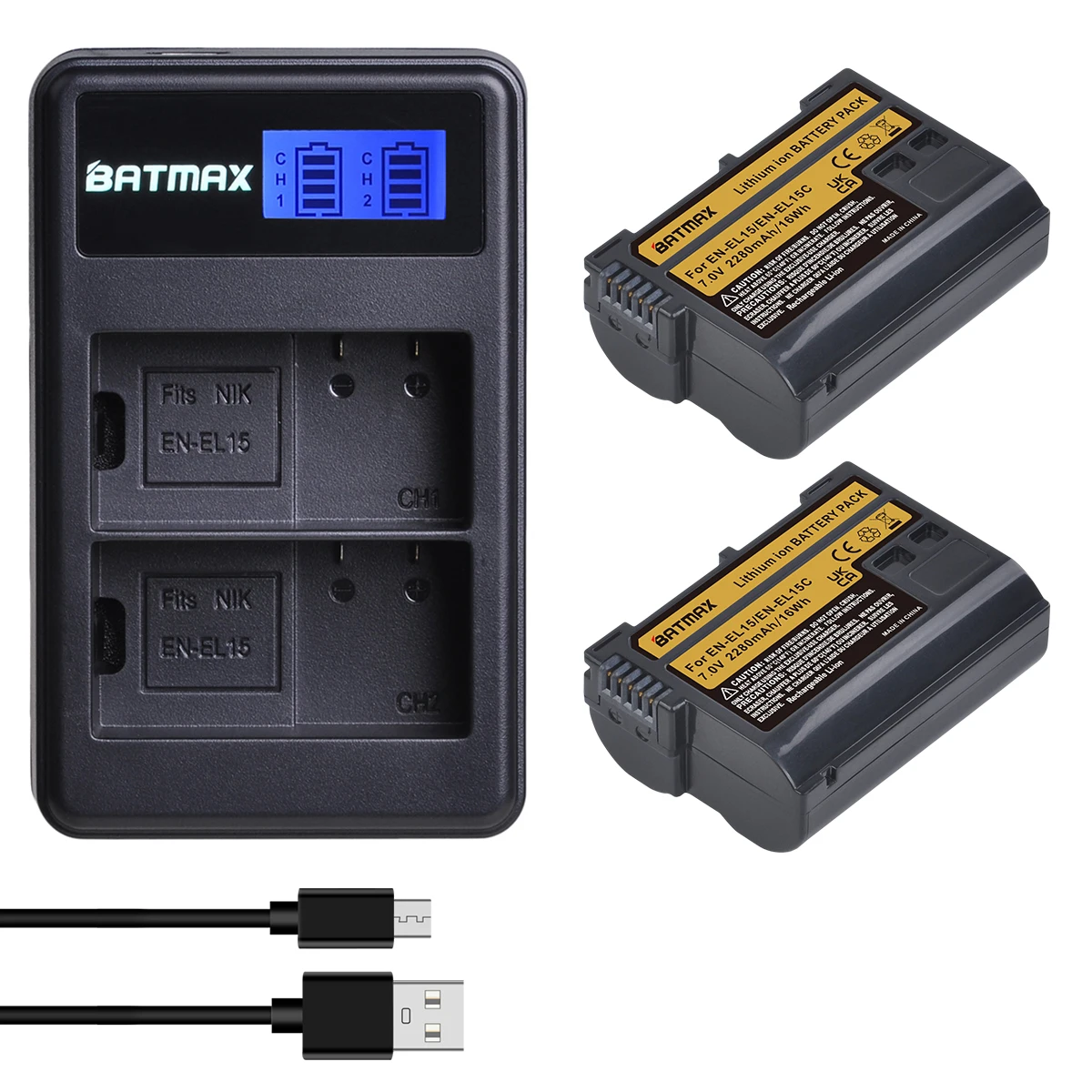 Batmax EN-EL15C EN EL15 Batería+LCD USB Cargador Dual para Nikon Z5, Z6, Z6 II, Z7, Z7II,Z8,D600 D610 D600E D800E D810 D7000