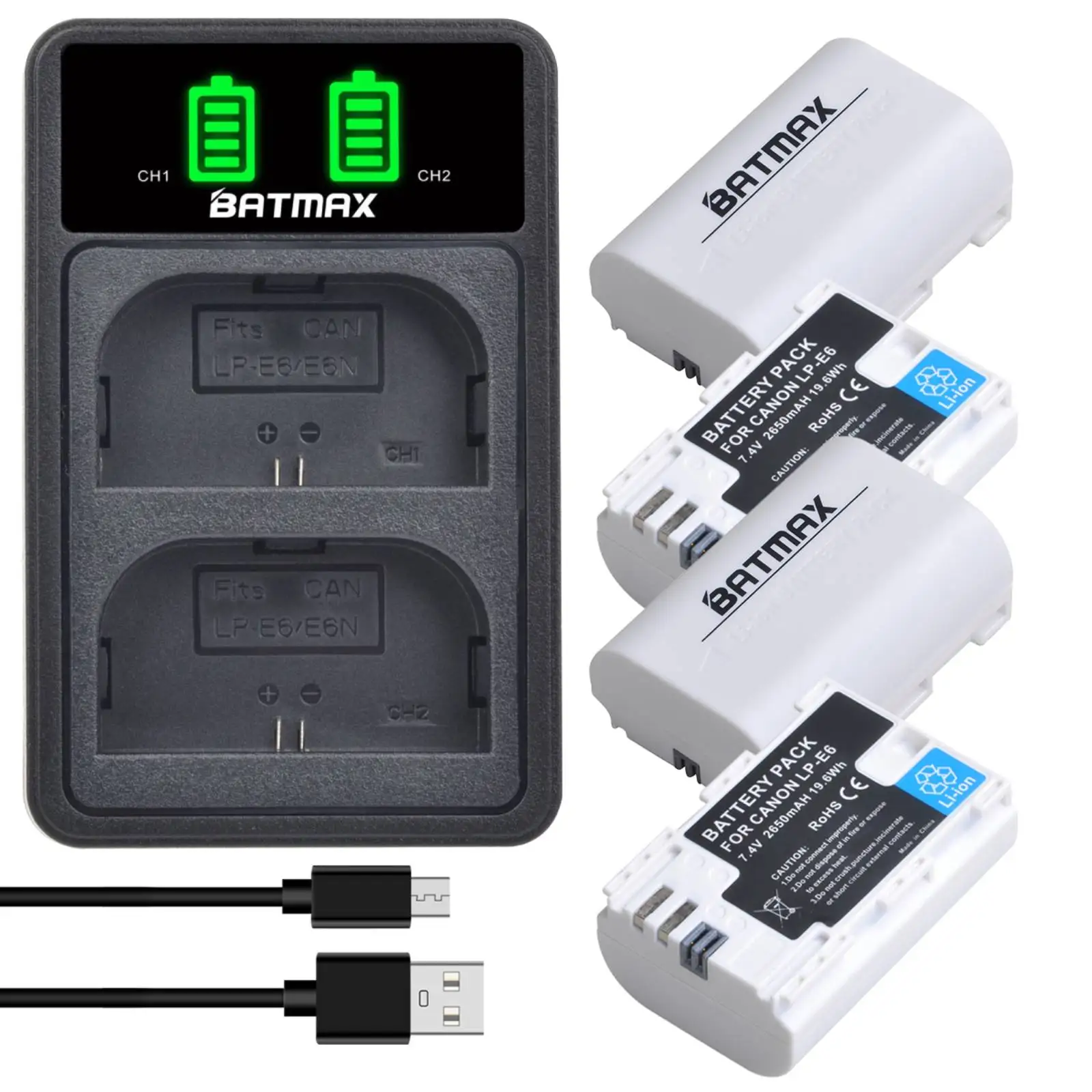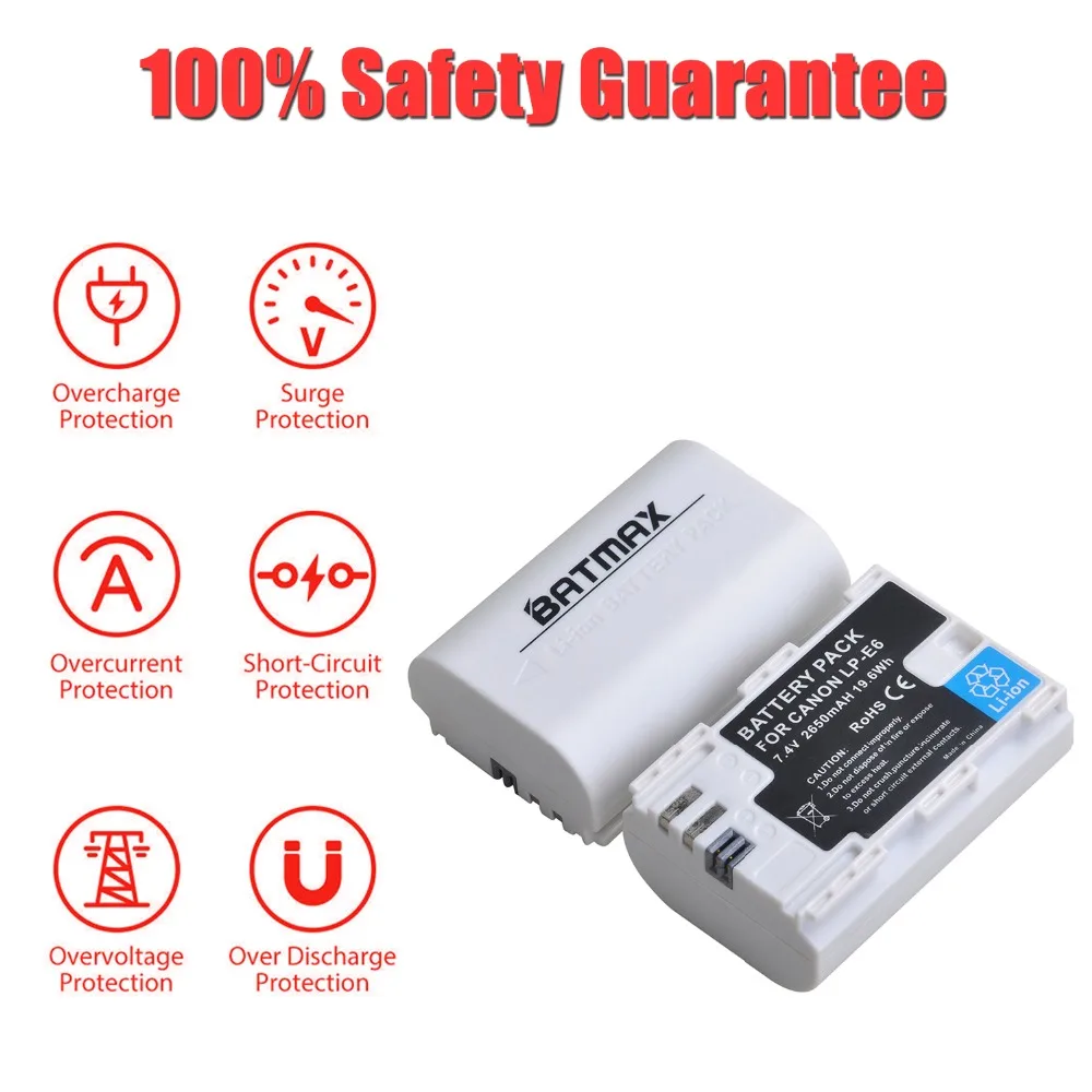 Batmax 2650mAh LP-E6 LP E6N batería blanca para Canon EOS 5D Mark II III 5DS 5DS R 6D 7D 60D 60Da 70D 80D 7D mark II III XC10 EOS 90D,EOS R,EOS R5,ROS R6, cámaras EOS RP
