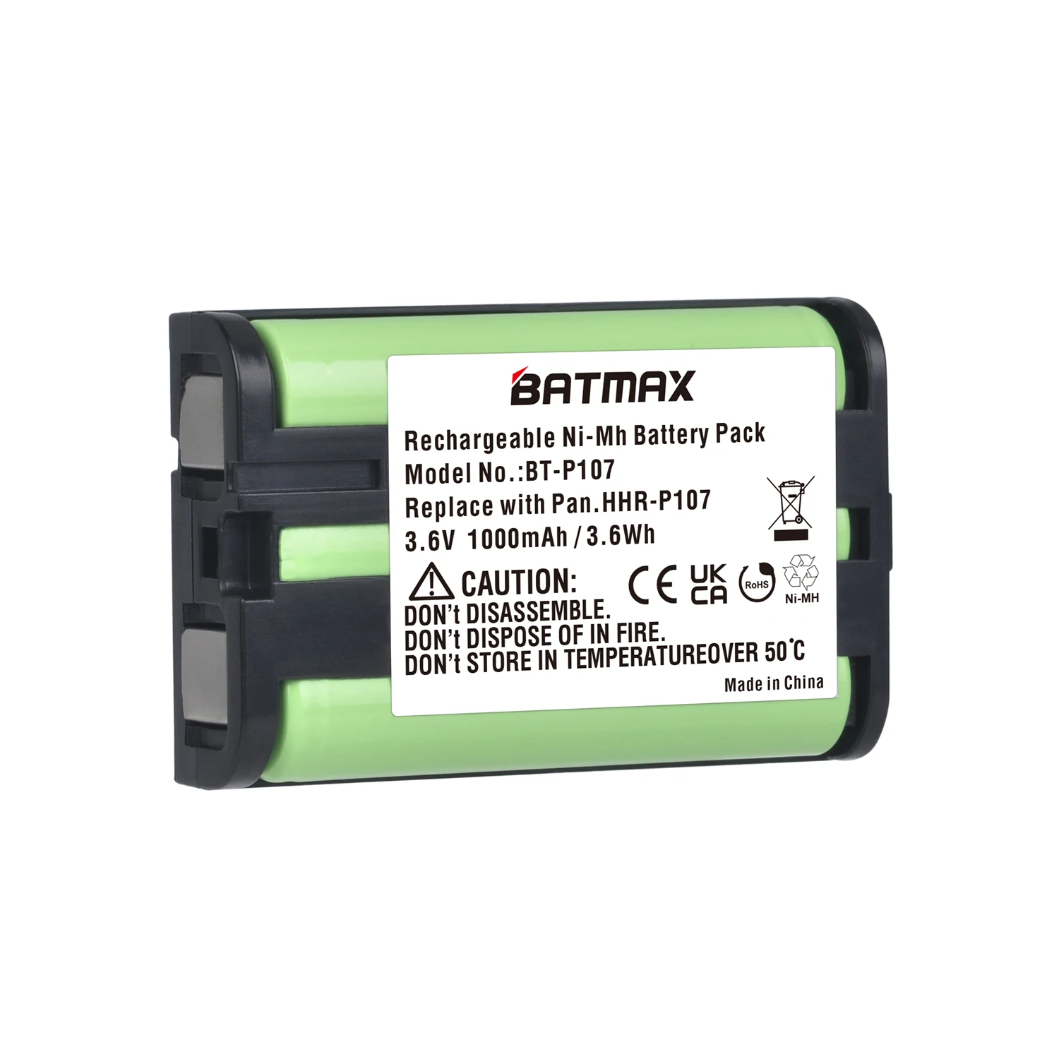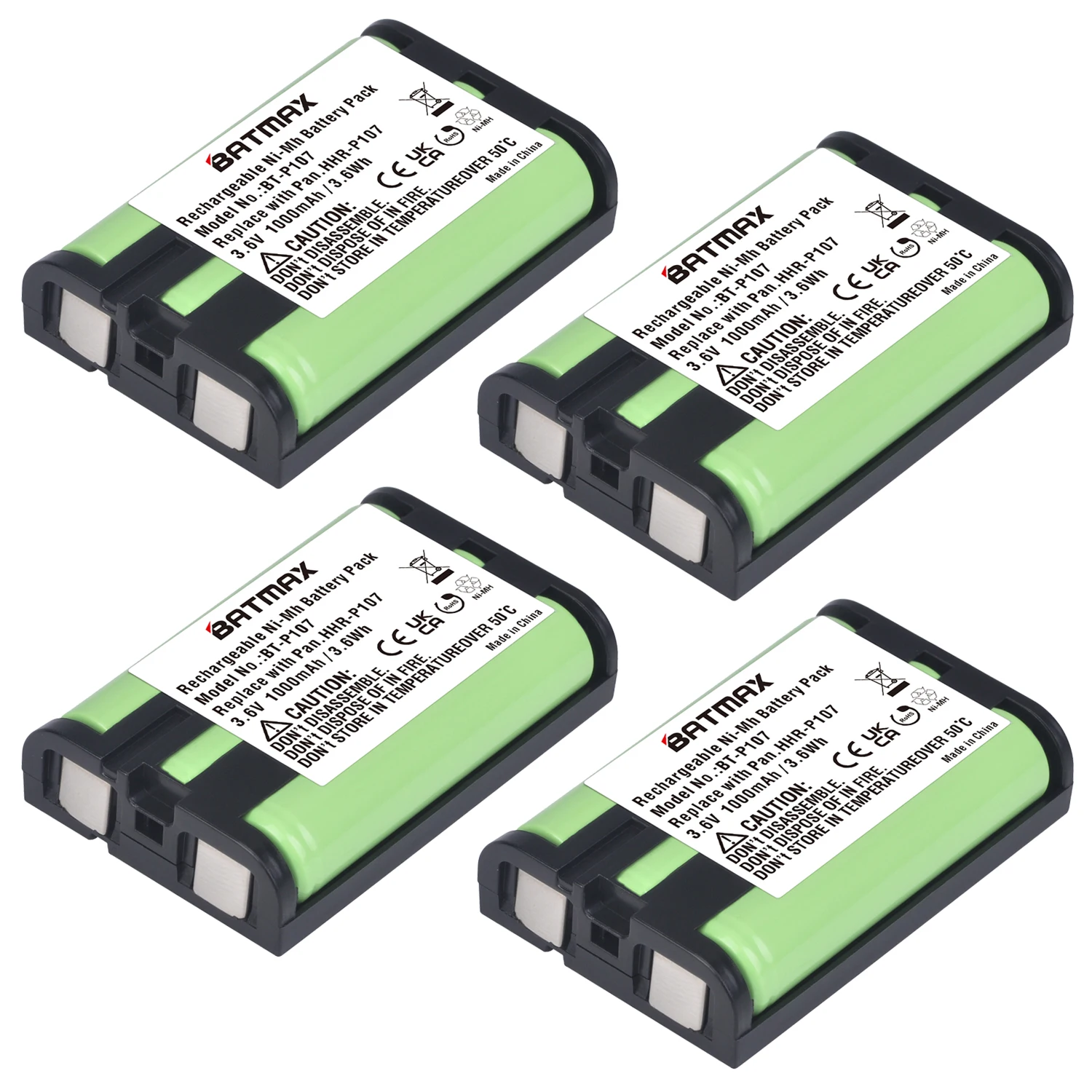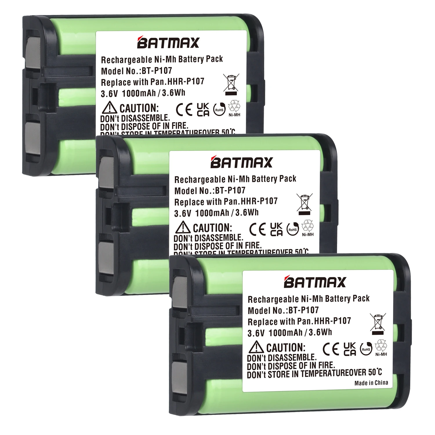 Batmax 3.6v 1000mAh HHR-P107 Rechargeable Cordless Phone Battery for Panasonic HHR-P107 HHR-P107A KX-TG6074PK, KX-TGA300