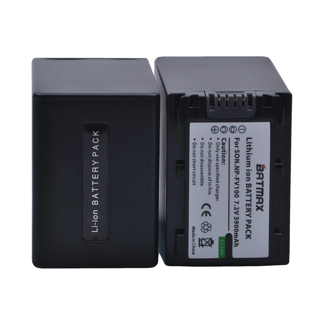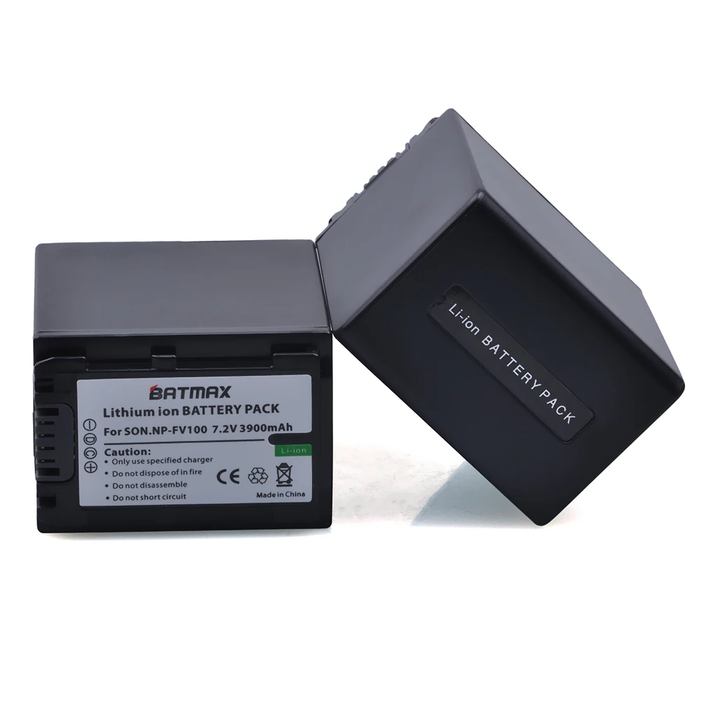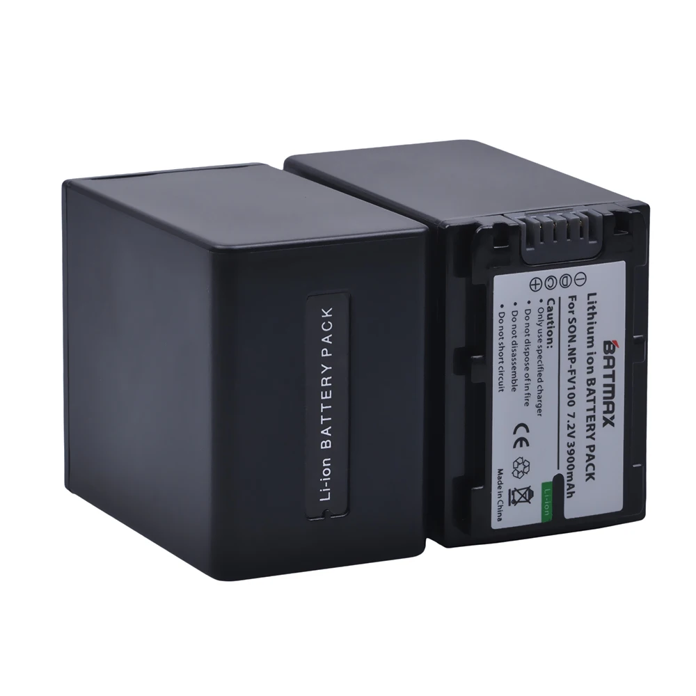 Batmax 3900mAh NP-FV100 NP FV100 NPFV100 batería + cargador doble para Sony DCR-SR15 SX15 FDR-AX100 HDR-CX105 PJ260VE HC9 PJ10 TD20V