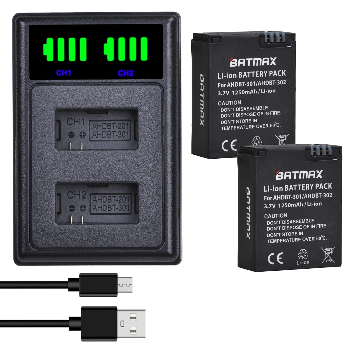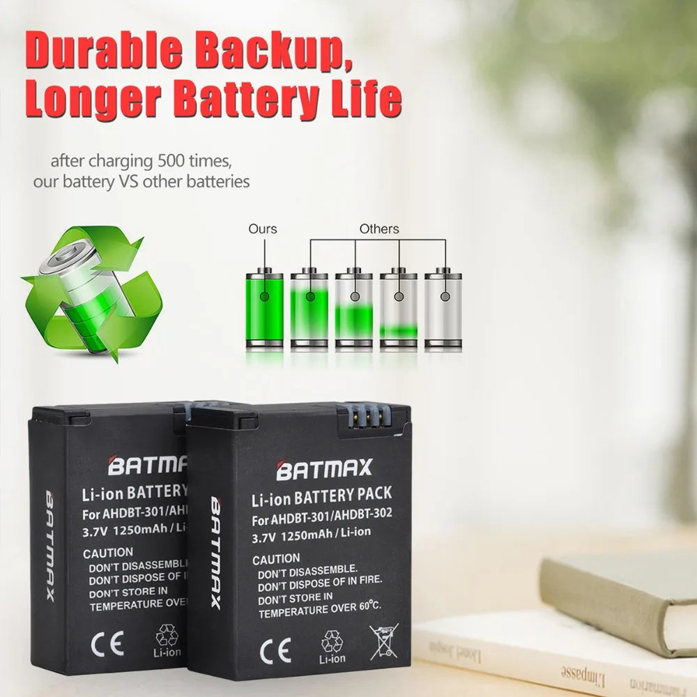 Package Included:2/3/4 x AHDBT-301 Batteries 1 x LED Dual Charger1 x USB-C Charging CableCaution:--Charge the battery before use