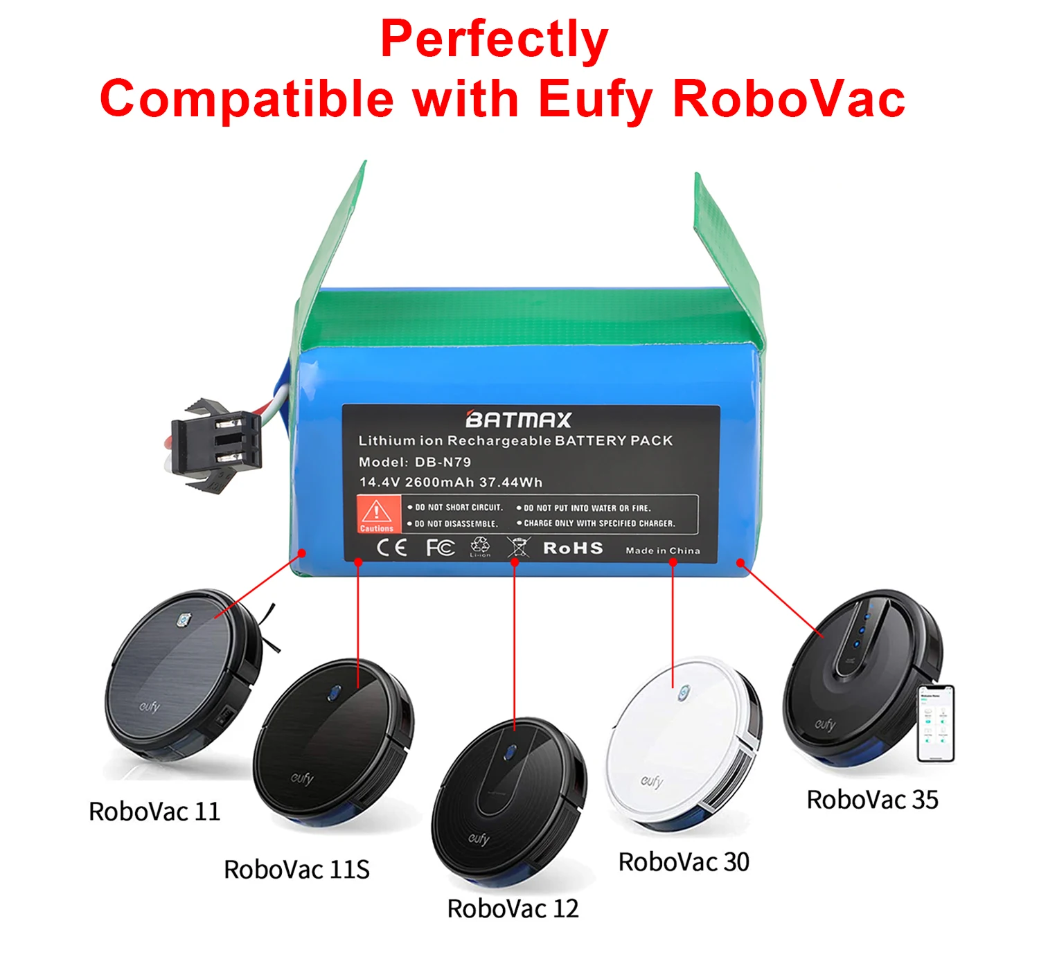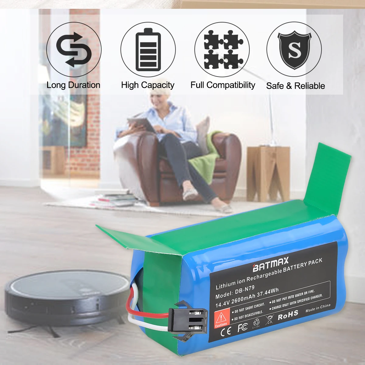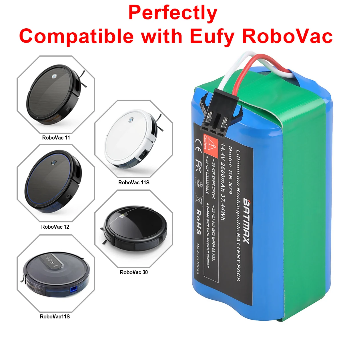 Batmax 2600mAh 14,4 V N79 batería de iones de litio para Ecovacs Deebot N79 N79S DN622, para Eufy Robovac 11, 11S, 11S MAX, 12, 15C, 15C MAX, 15T, 30