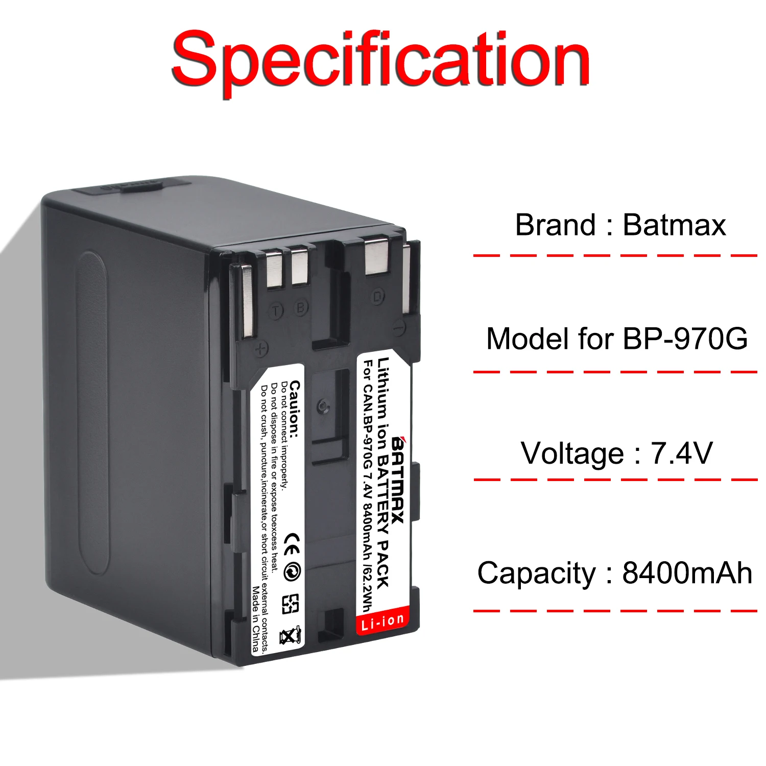 Batería Batmax de 8400mAh con entrada/salida USB para Canon EOS C100, HD40AC,HD3AC,XF100, XF100, HD3AC, mAh, 3, 3, 3, 2, 2, 2, 3, 2, 3