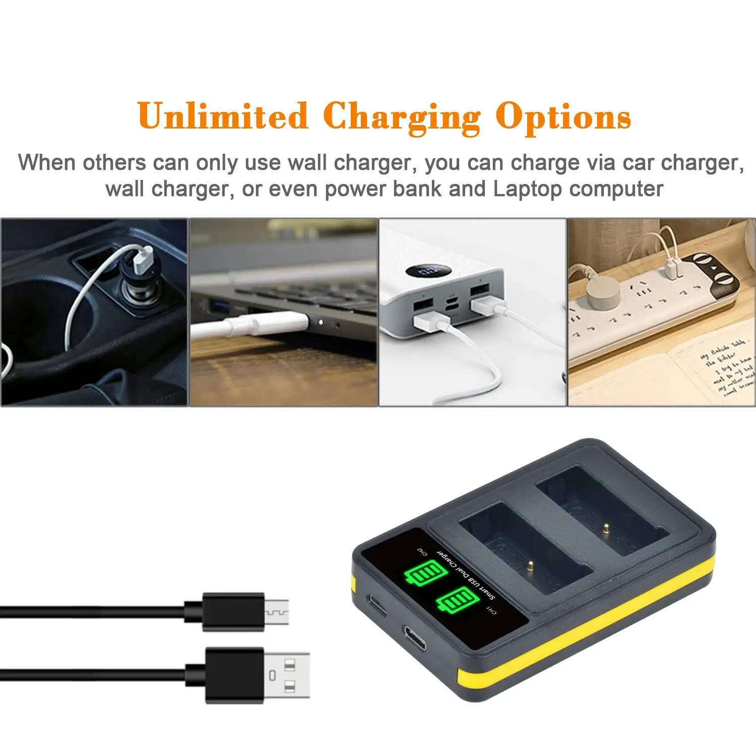 2. Carga dos baterías simultáneamente y de forma independiente.