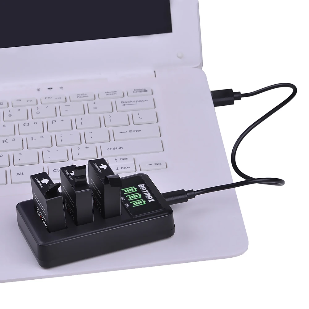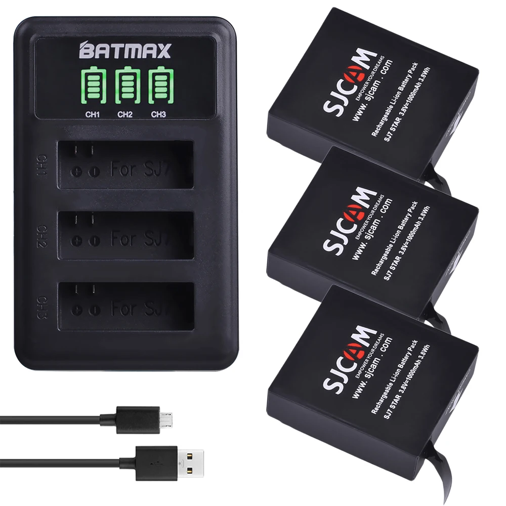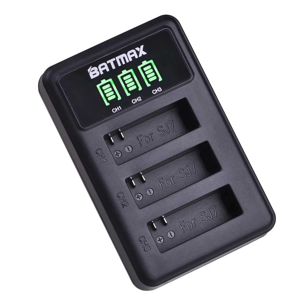 Característica del cargador:1. Diseñado para SJCAM SJ7 batería/akku2. Carga tres baterías simultáneamente e independientemente.3. Con pantalla LED para mostrar el estado de carga de cada batería.4. Cargador USB de 3 canales con pantalla LED con un cable micro USB para una fácil carga.5. Control de corriente constante para evitar sobretensión, sobrecarga, protección contra cortocircuitos.6. Función de arranque suave para evitar daños por una gran corriente de carga durante la carga.7. Perfecto para viajes y uso doméstico, portátil y cómodo de llevar.Paquete incluido:3 baterías originales SJCAM SJ7 Star