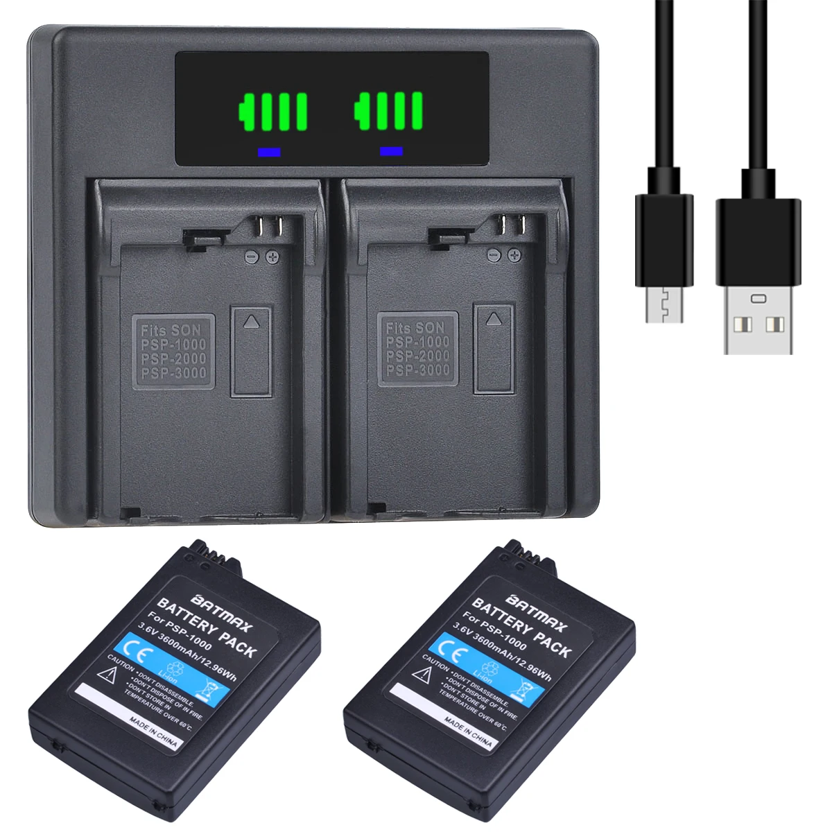 Batería Batmax PSP1000 de 3600mAh + cargador Dual rápido LED para consola Sony PSP 1000 PlayStation portátil PSP1000