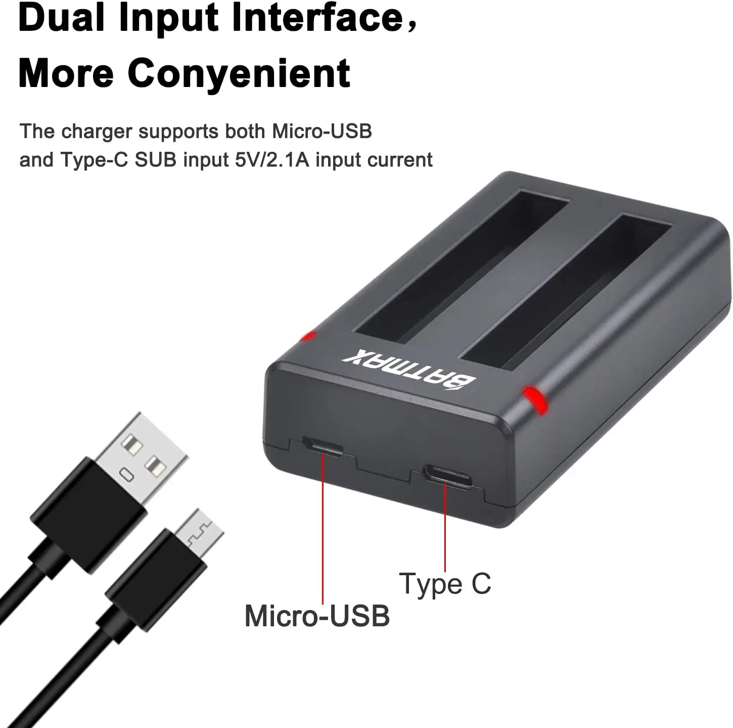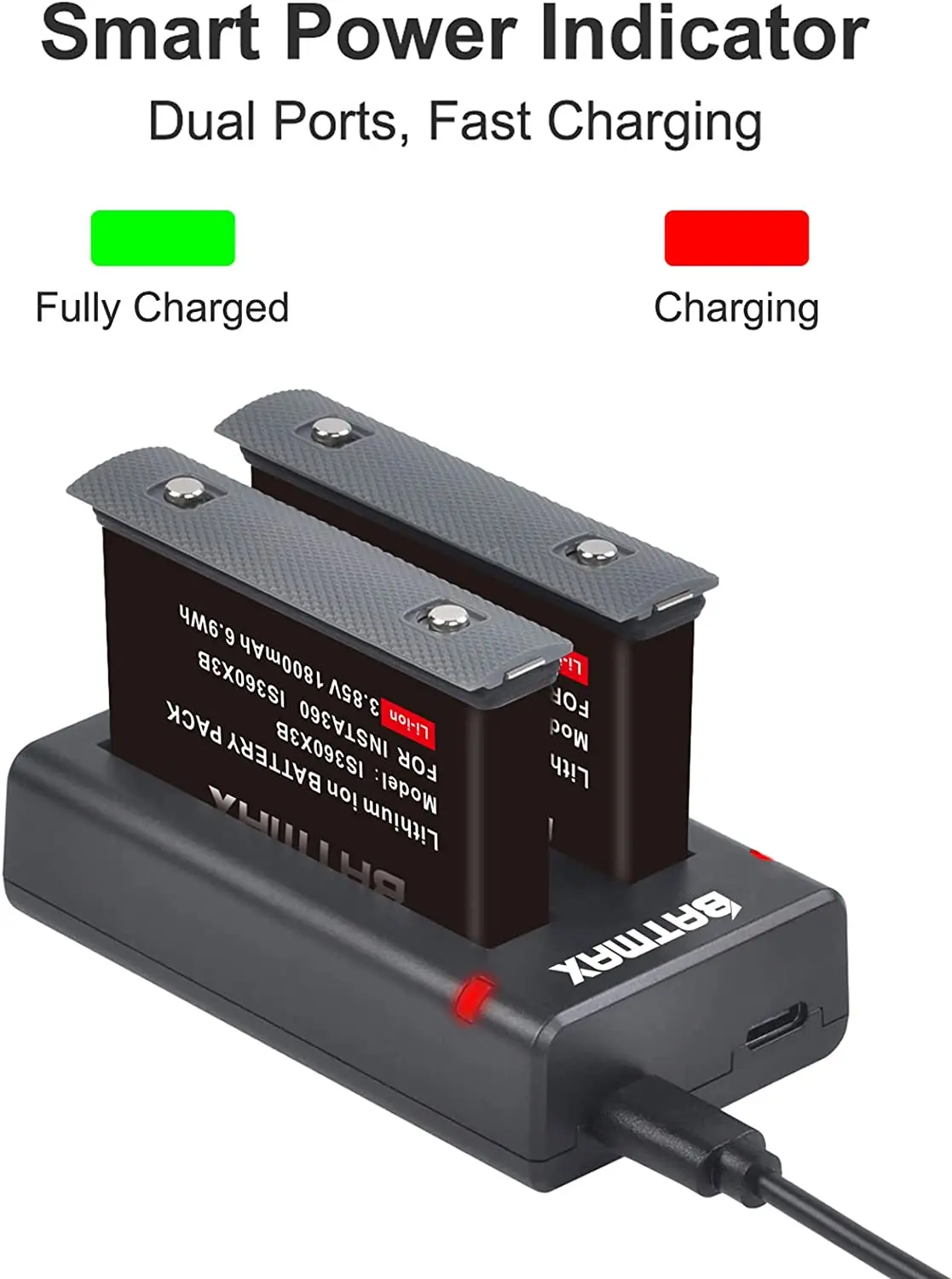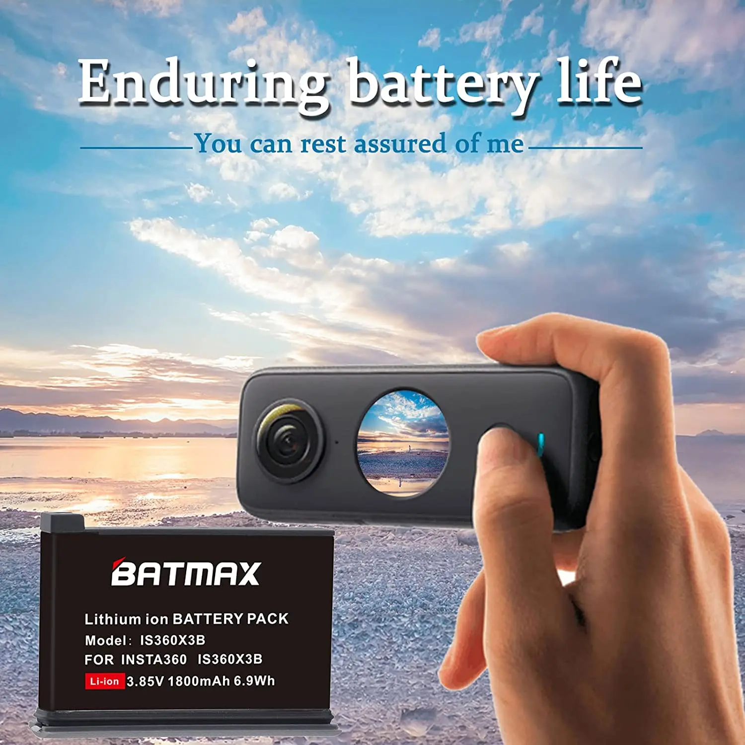 Batmax Insta360 ONE X3 Batería de repuesto 1800mAh + Cargador dual USB para cámara de acción Insta 360 One X3