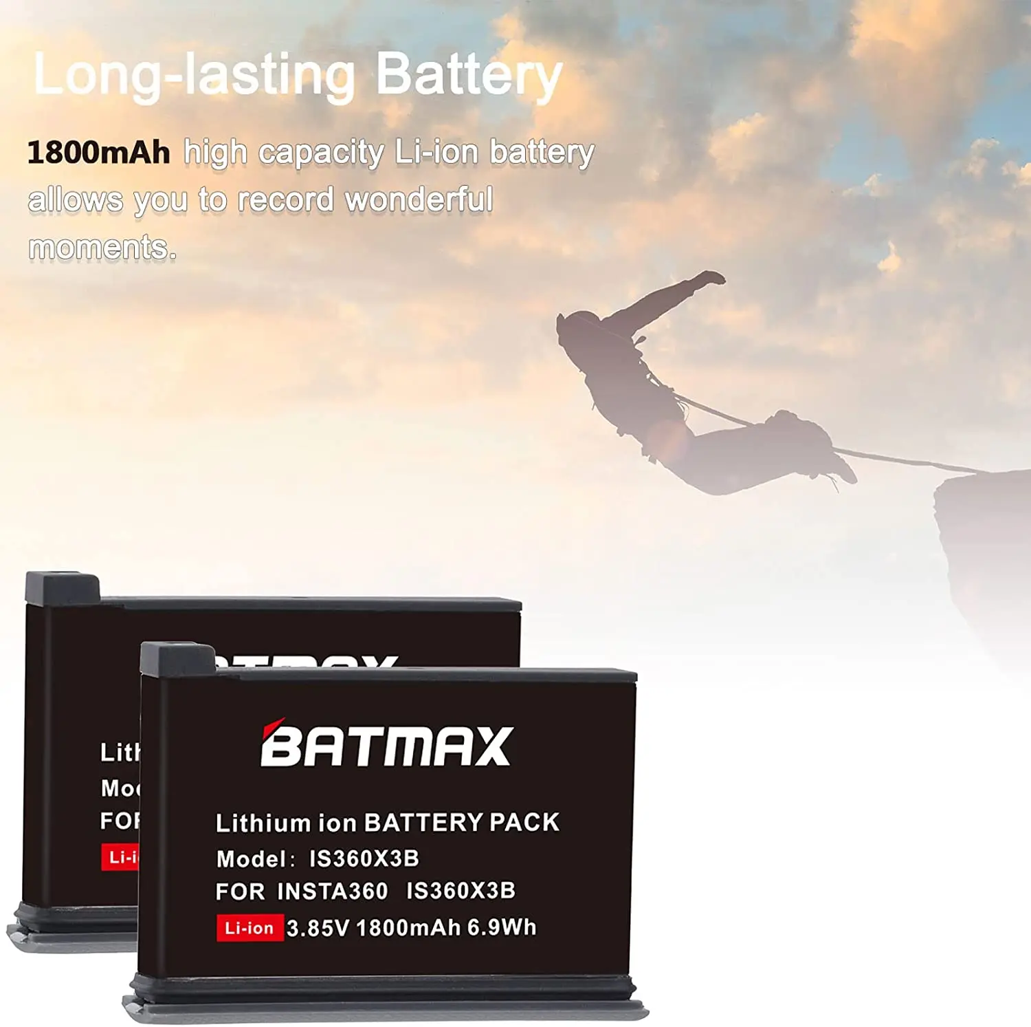 Comprar Batmax-Batería de repuesto para Cámara de Acción Insta360 ONE X3, 1800mAh, cargador Dual USB, para Insta 360 One X3