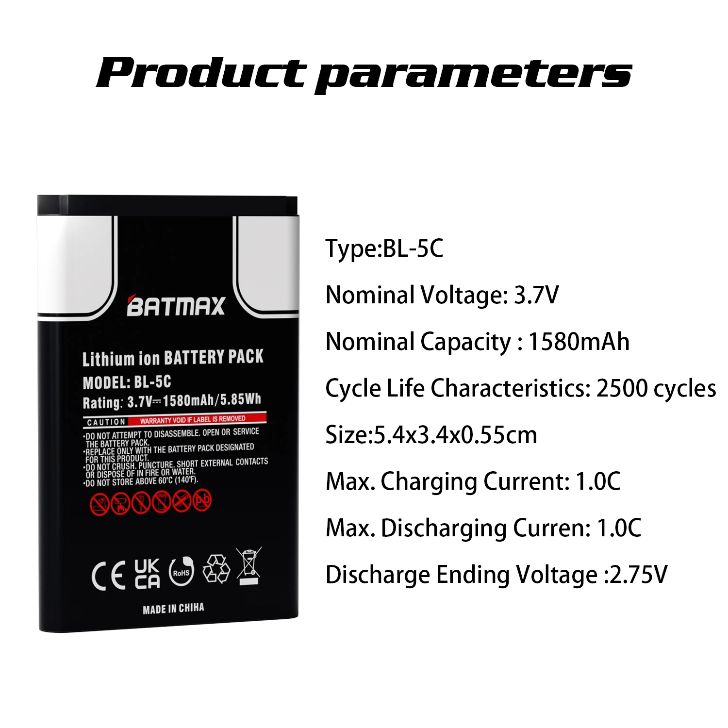 Batmax BL-5C BL 5C batería de teléfono 1580mAh batería para Nokia 1100 1110 1200 1208 1280 1600 2600 2700 3110 5130 6230 6230i N70