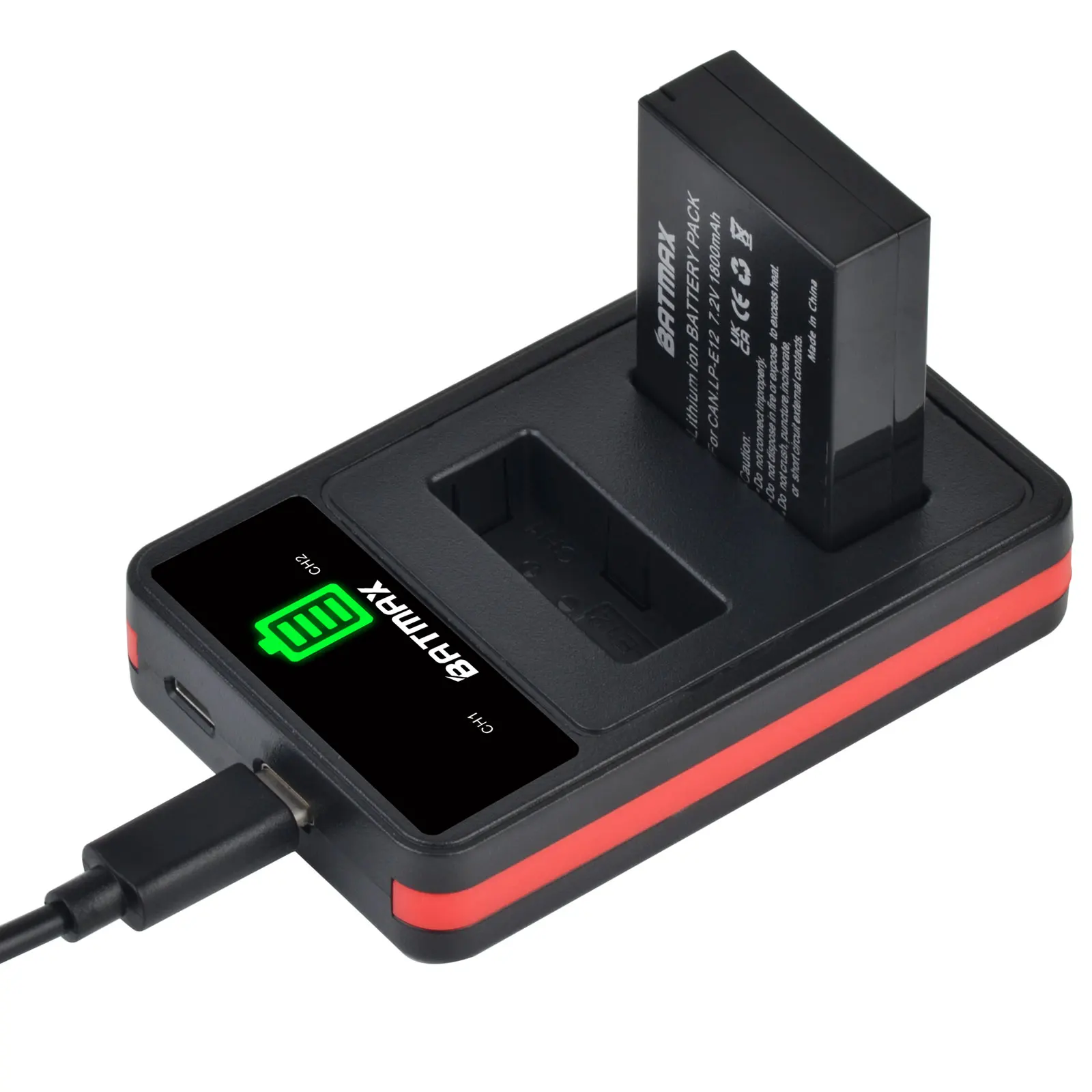 Batería para cámara Batmax LP-E12 LP E12 LPE12 + nuevo cargador dual LED USB con puerto tipo C para cámaras digitales Canon EOS M EOS M10 M100 EOS Rebel SL1 EOS 100D