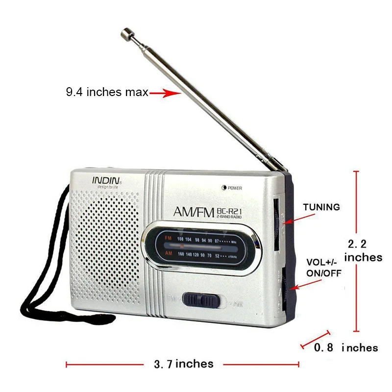 Comprar BC-R21 Reproductor receptor de radio AM FM portátil Altavoz incorporado con auriculares estándar de 3,5 mm Portátil ligero ultrafino
