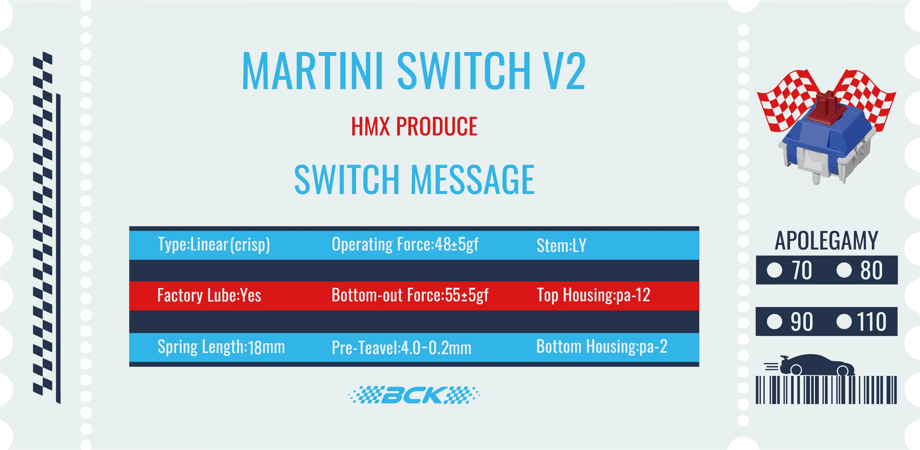 BCKeys×HMX Martini V2 Teclado mecánico interruptores lineales DIY fuerza de Actuación lubricada de fábrica 42g 48g vástago LY