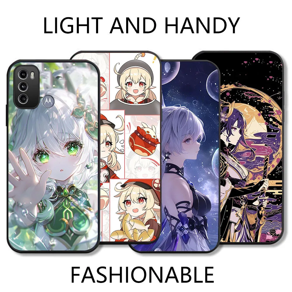 BD-28 Genshin funda negra para Moto G60 G60S G51 G30 G40 Fusion G71 G52 E32 G42 G41