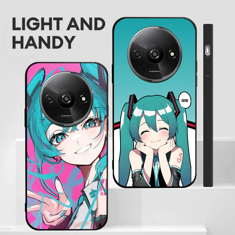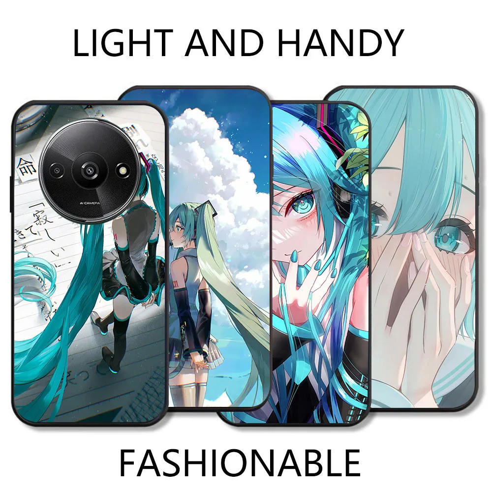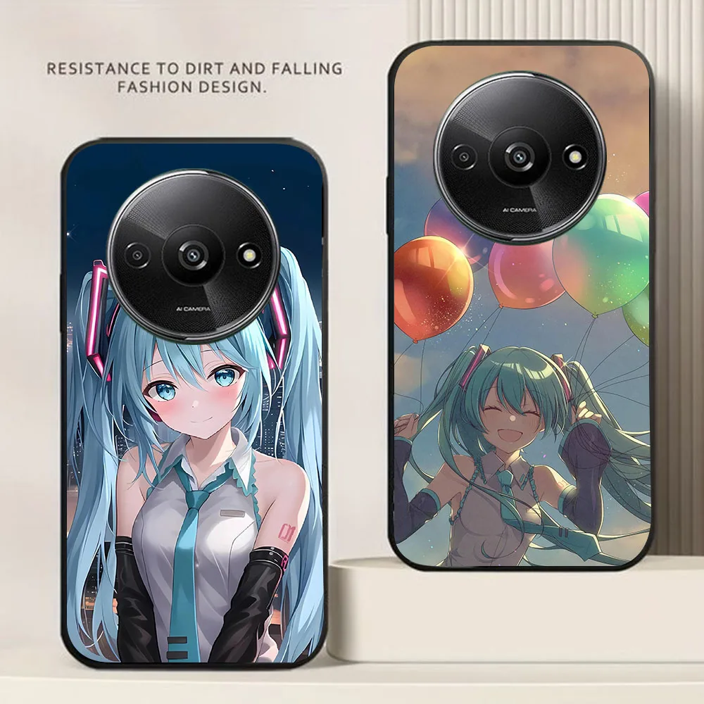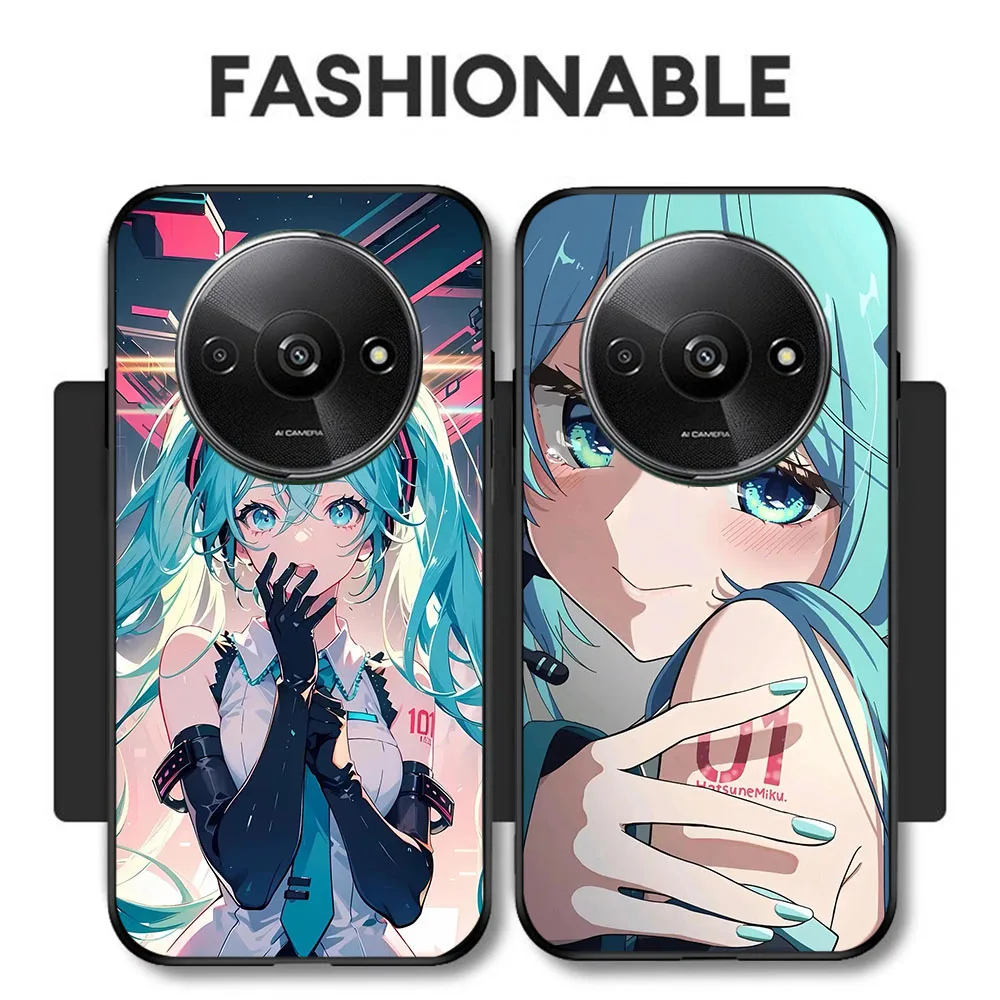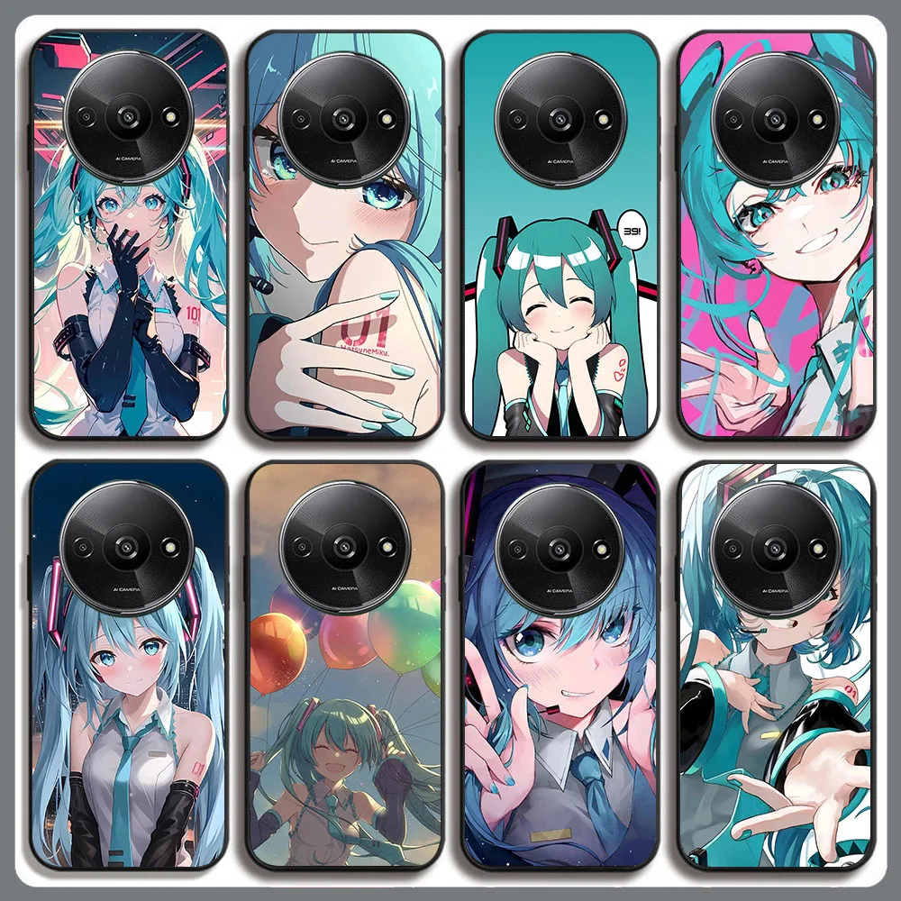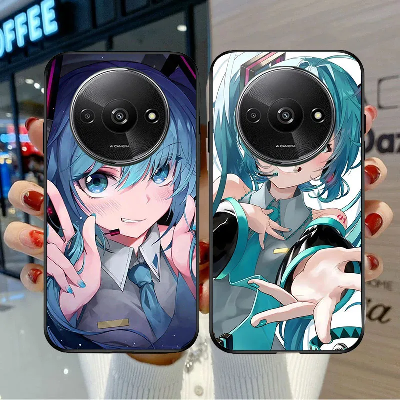 Funda negra BD-32 Hatsune Mikus para Xiaomi Redmi Note 14 14C 14R A4 A3 A3X POCO F2 X3 C75 NFC Pro Plus