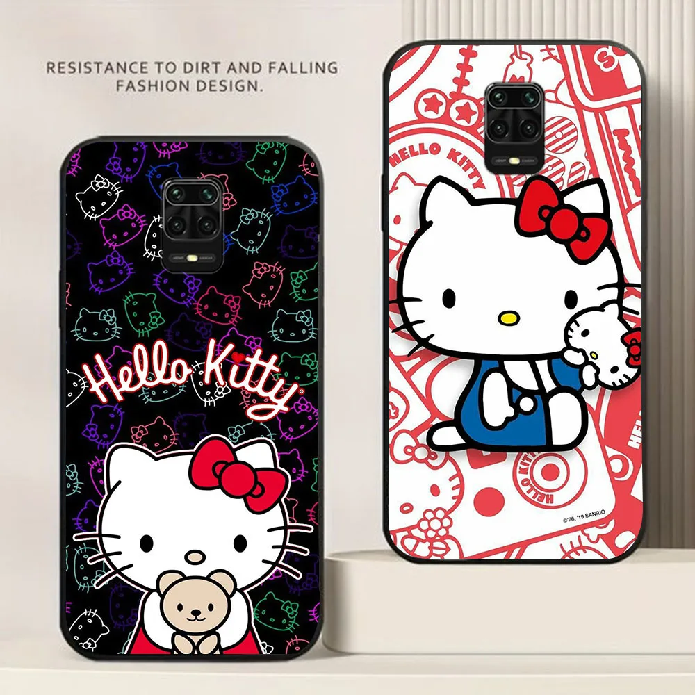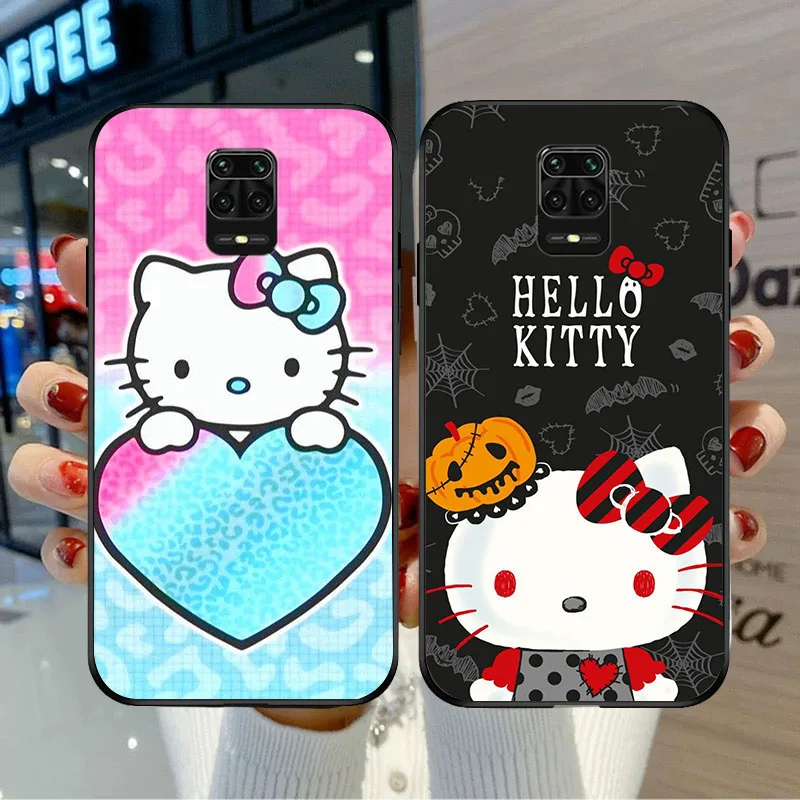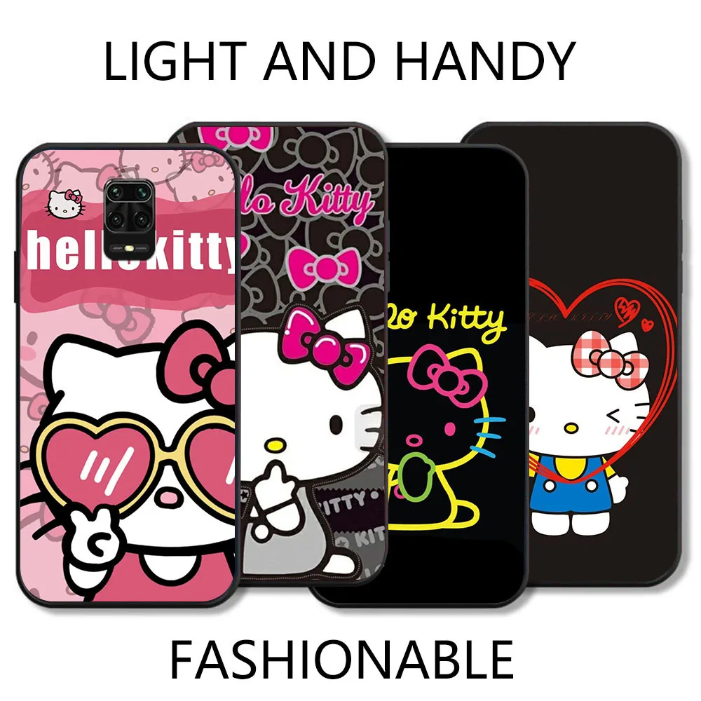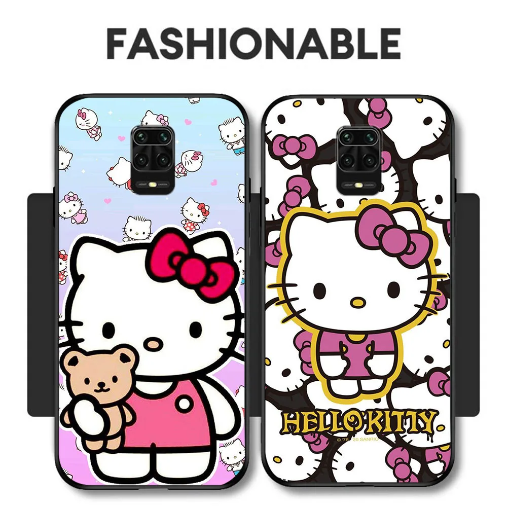 BD-33 Funda negra Hello Kitty para Xiaomi Redmi Note 9 9S 9T K30 POCO M2 Pro Max Zoom
