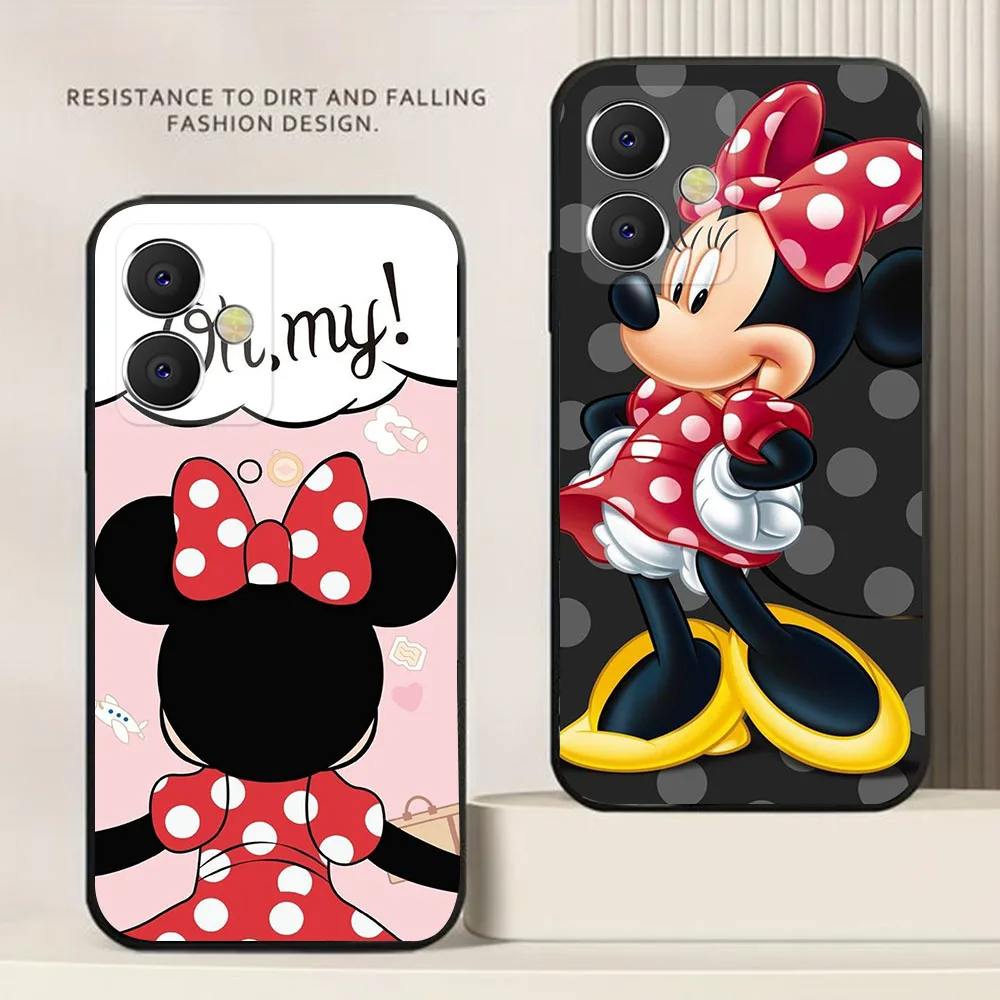 BD-46 funda negra Minnie Mouse para Moto G55 G54 Power G64 G84 S50 S30 X30 Pro Edge 30 Neo Fusion Ultra