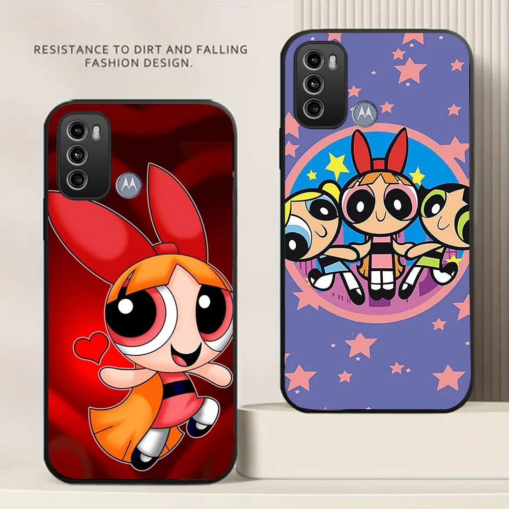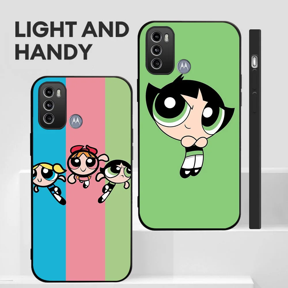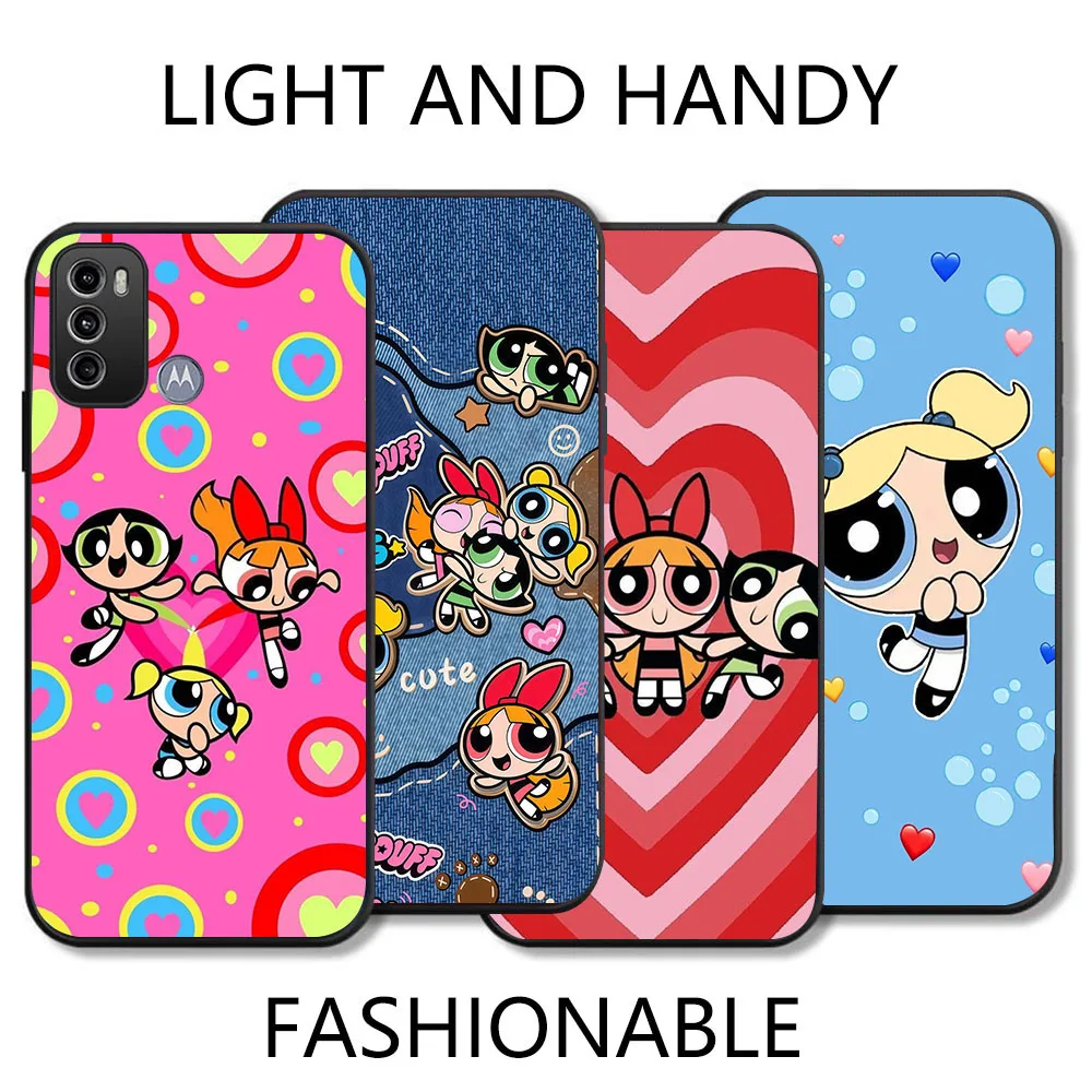 BD-61 La funda negra PPowerpuff Girls para Moto G60 G60S G51 G30 G40 Fusion G71 G52 E32 G42 G41
