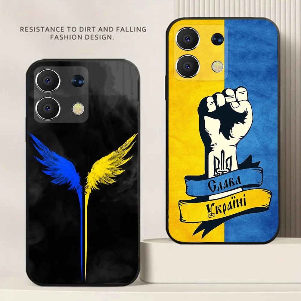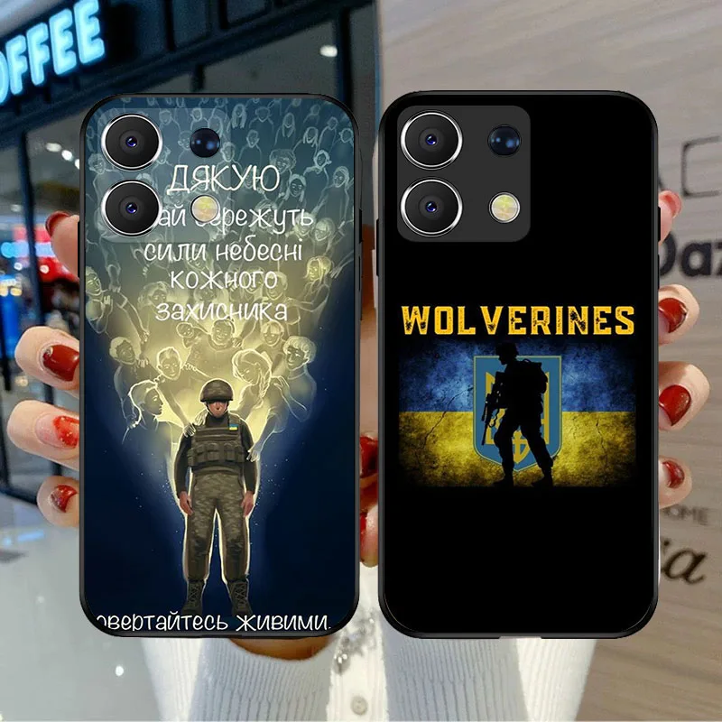 Funda negra soldado con mapa de la bandera de Ucrania BD-65 para Xiaomi Redmi Note 13 13C 13R POCO X6 X7 M7 C65 Pro Plus