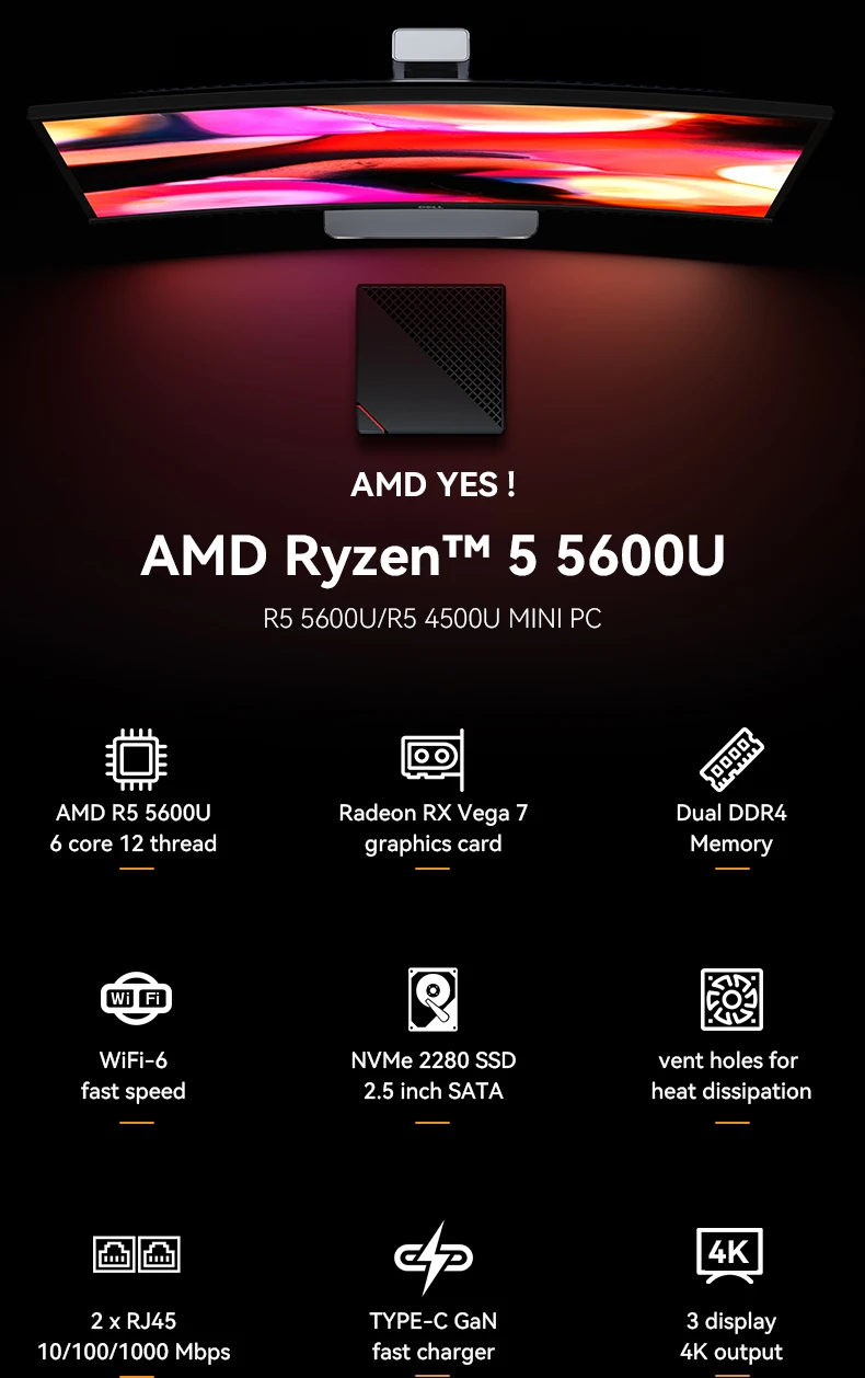 Comprar BEBEPC-MINI PC AMD Ryzen 5 4500U 32G RAM 2 x DDR4 3200MHz NVME 2280 SSD 2 x LAN 2,5G AX200 RZ608 wifi 4k 1 x SATA 1 x M.2 ordenador para juegos