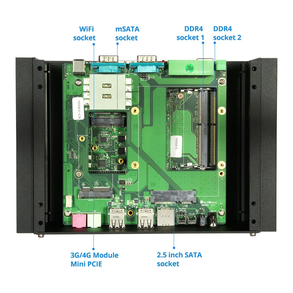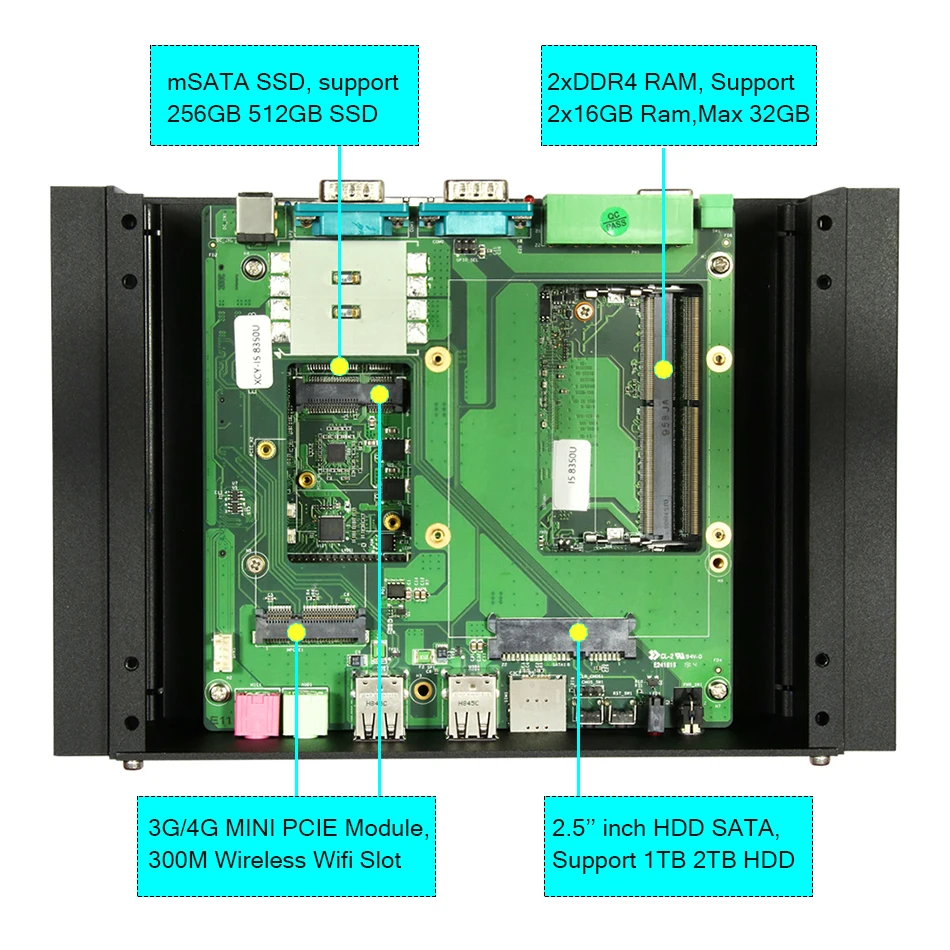 2.Admite HDD dual de 2,5 pulgadas y mSATA, también con módulo 3G/4G mPCIE