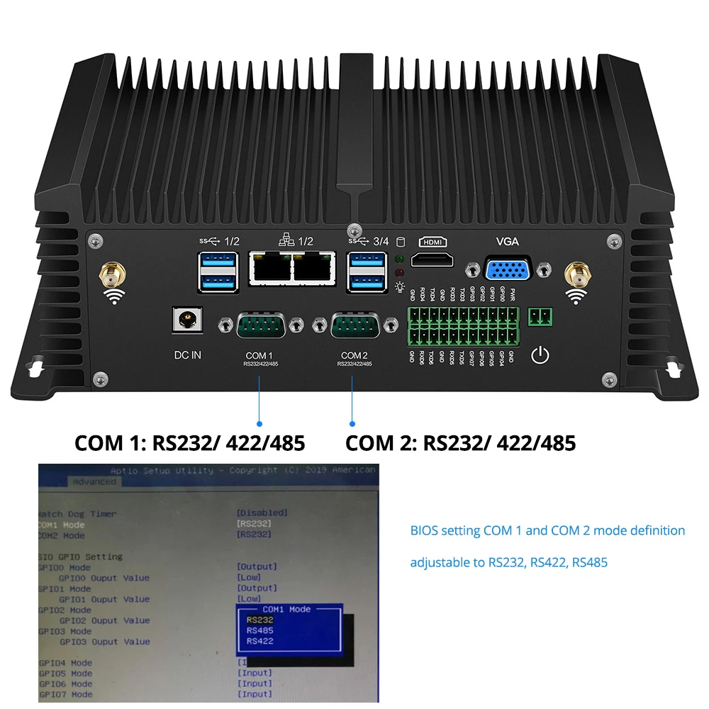 Comprar BEBEPC-Mini PC Industrial Core i5 8350U i7 8550U 2 * DDR4 RAM 2 * RS485 Dual LAN HDMI WiFi 4G módulo Windows Linux ordenador sin ventilador