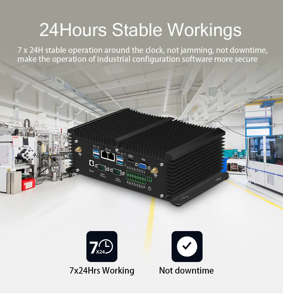 BEBEPC Industrial Mini PC Core i5 8250U i5 7200U 2*DDR4 RAM 2*RS485 Doble LAN HDMI WiFi 4G Módulo Windows Linux Computadora sin ventilador