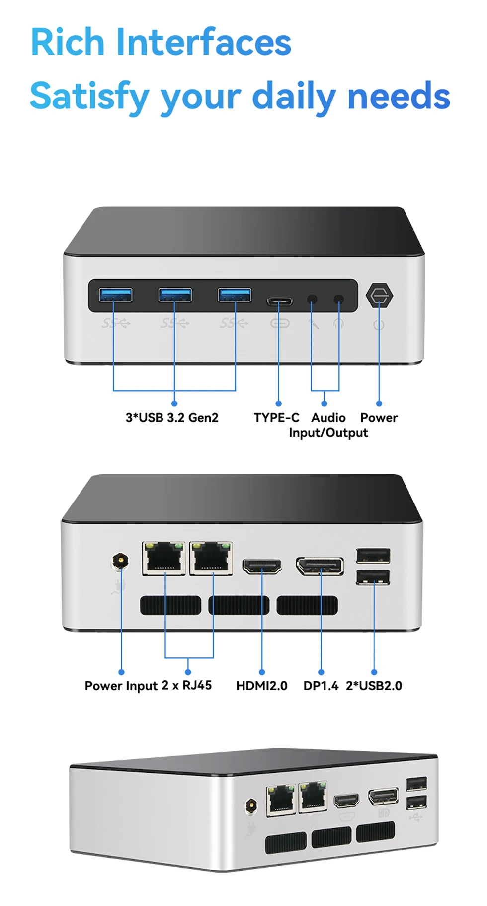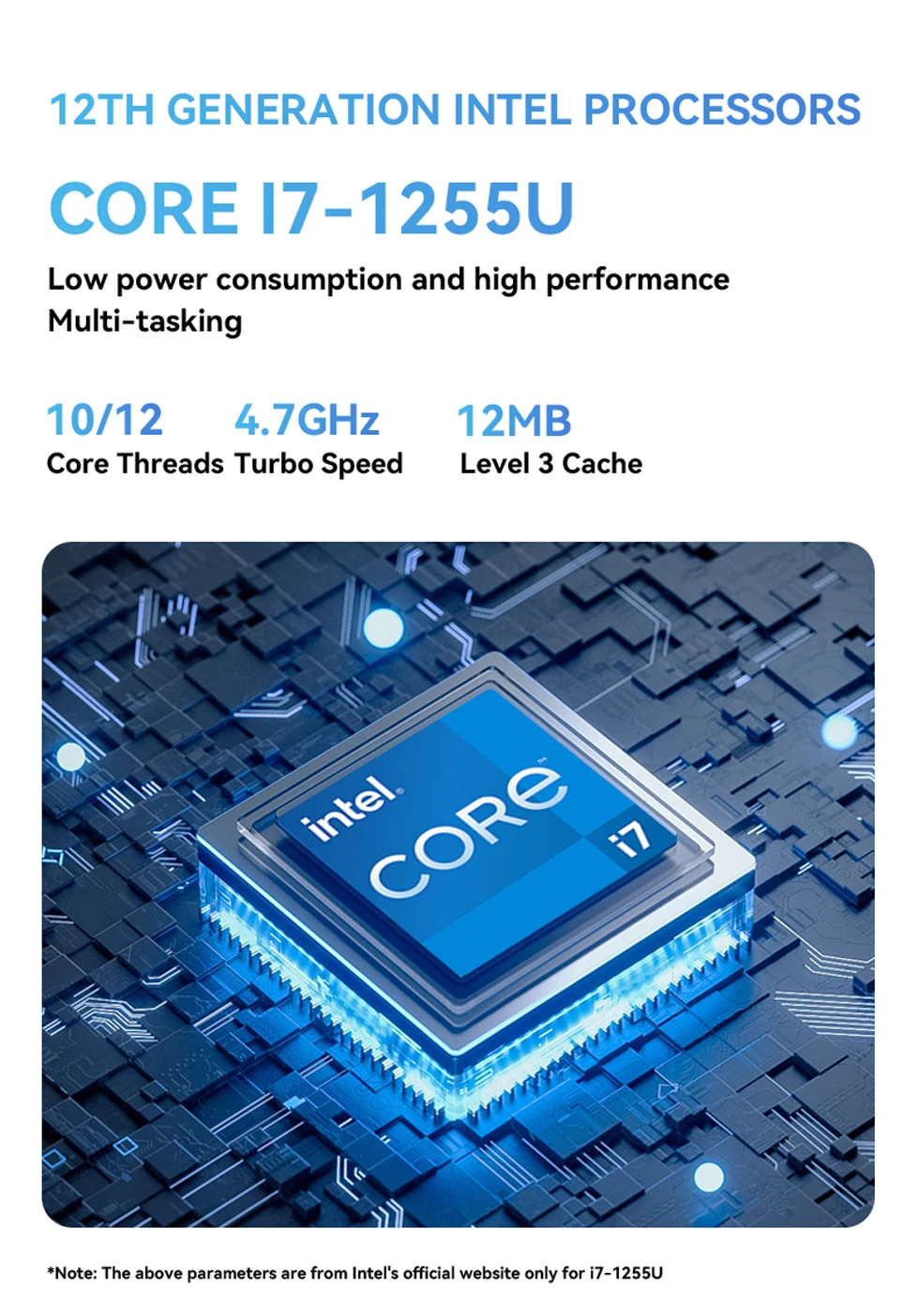 BEBEPC-MINI PC Intel Core i7-1255U Realtek 8111H, 2 x rj45 DDR5, 64 gramos, SODIMM x 2, M2, NVME, Windows 10/11, Linux