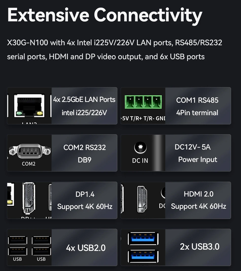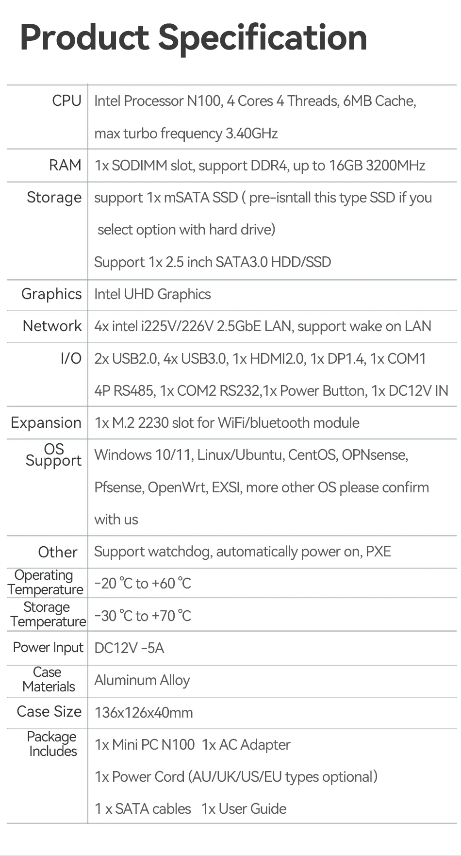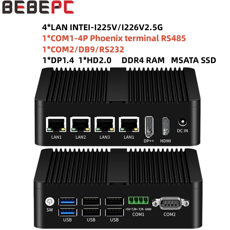Comprar BEBEPC-Mini PC Intel N100 2 X COM RS485 RS232 Firewall Router 4 LAN DDR4 intel Ethernet i225V i226V Pfsense Linux Windows 11 4K