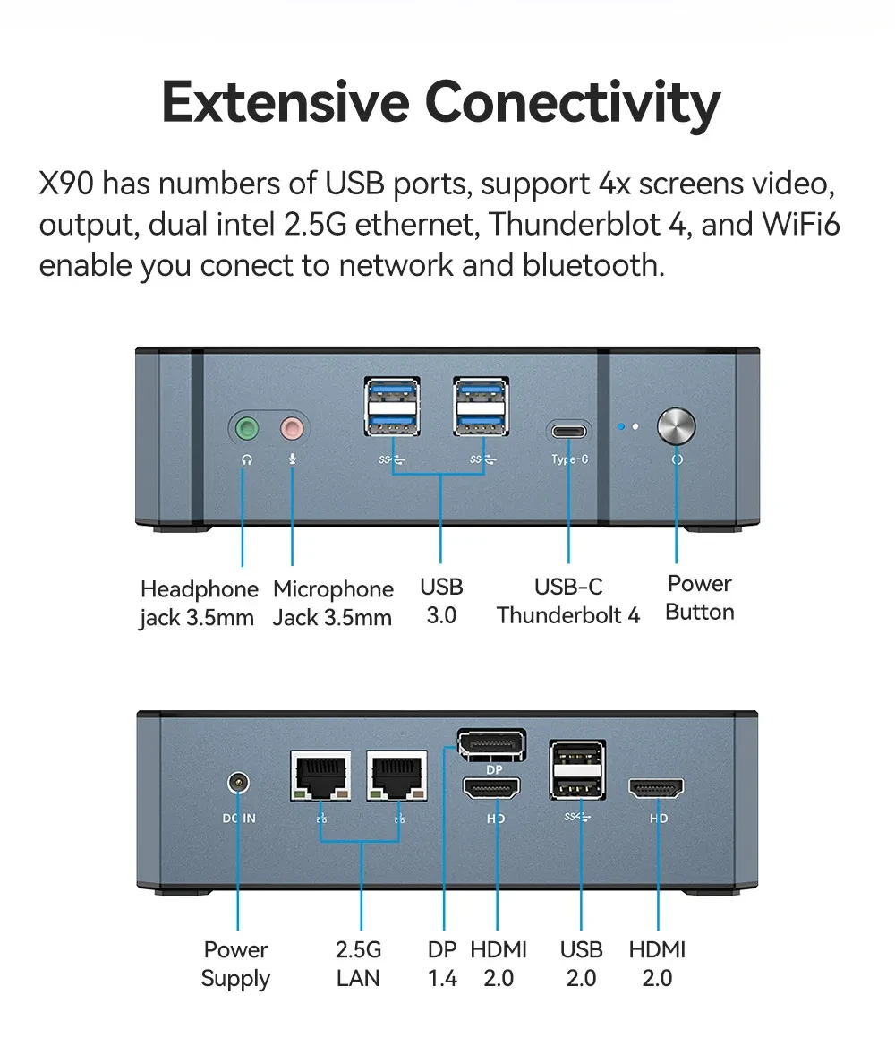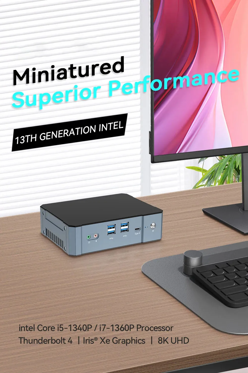 BEBEPC Mini PC para juegos con Inter Core i7-1360P compatible con 2xDDR5 RAM 2xM.2 NVME computadora compacta para Office Windows10pro Ready