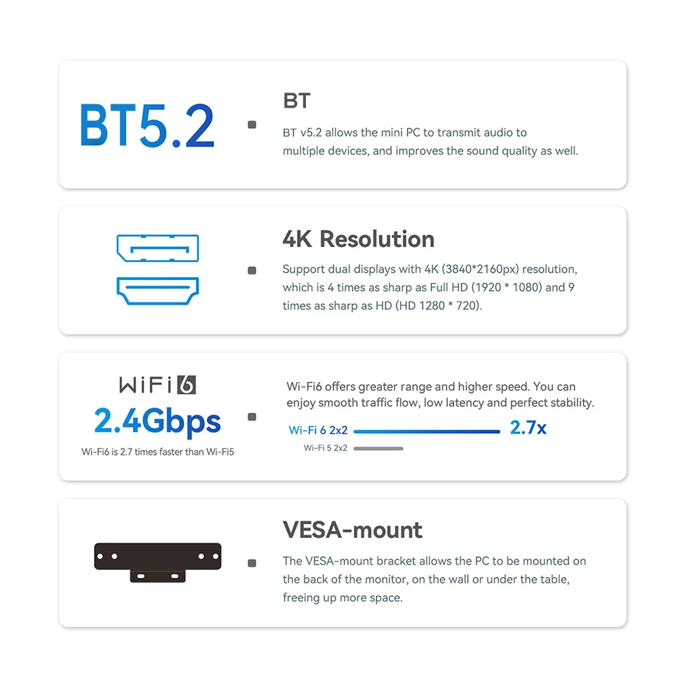 -Soporte: HDMI 2,0 (máximo 4K 60Hz)