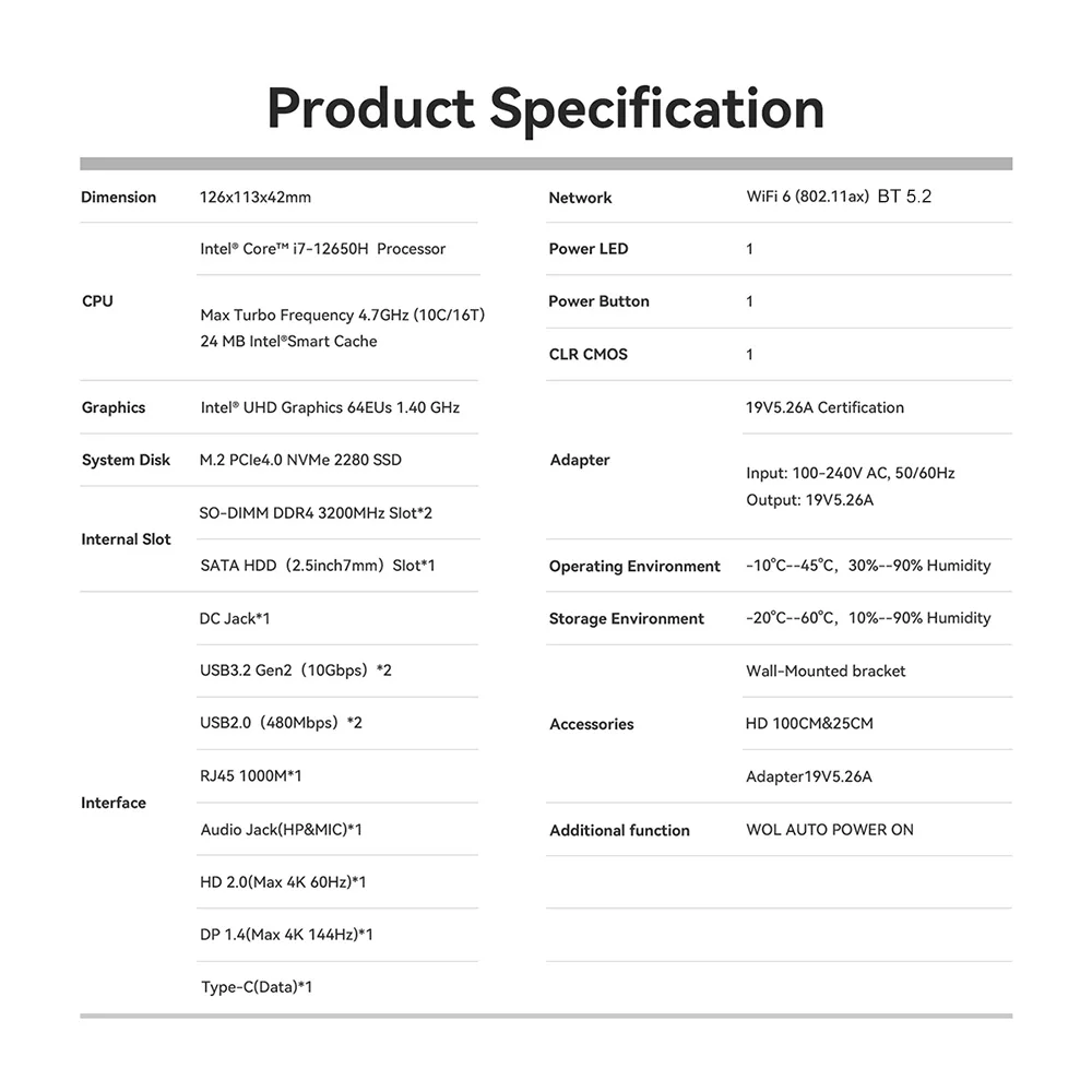 Comprar Beelink-Mini ordenador de escritorio para juegos, Intel 12th Gen i7-12650H, 32GB, DDR4, 500GB, NVME SSD, 1000M, SEi12, 12650H, SEi 12, WiFi6, BT5.2