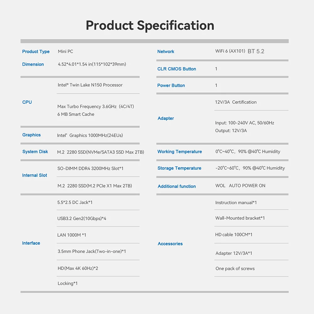 【Smooth & Light weight】Beelink Mini PC comes with Intel Twin Lake 4-Cores N150(up to 3.4GHz). This mini pc is suitable for Zoom meetings/Skype, allows to run Office, PS, surf the internet and watch stream video at the same time. The Mini Computer measures only 115 x 102 x 41mm, which is ideal for diverse usage scenarios such as office, online education, entertainment, industry, etc