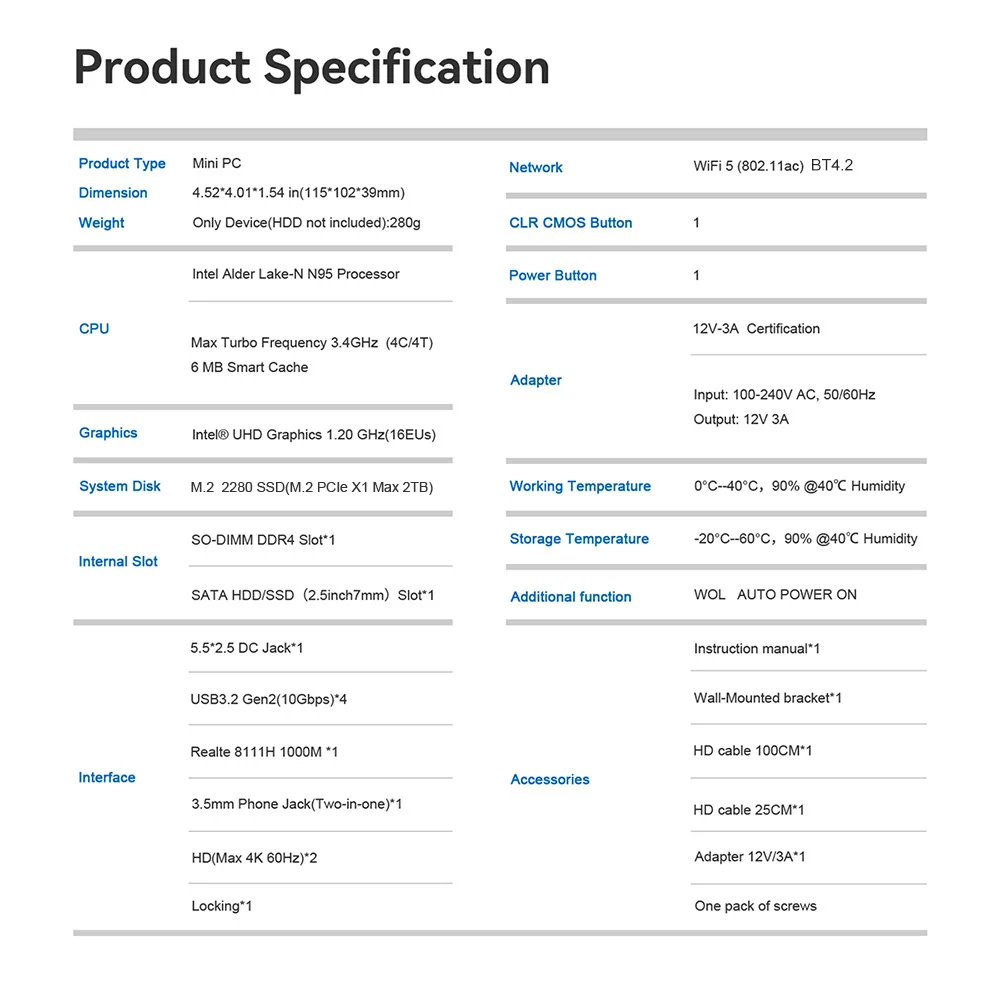 【Smooth & Light weight】Beelink Mini PC comes with Intel 12th Gen 4-Cores N100(up to 3.4GHz), preinstalled with W11 Pro, and supports Linux operating system. This mini pc is suitable for Zoom meetings/Skype, allows to run Office, PS, surf the internet and watch stream video at the same time. The Mini Computer measures only 115 x 102 x 41mm, which is ideal for diverse usage scenarios such as office, online education, entertainment, industry, etc
