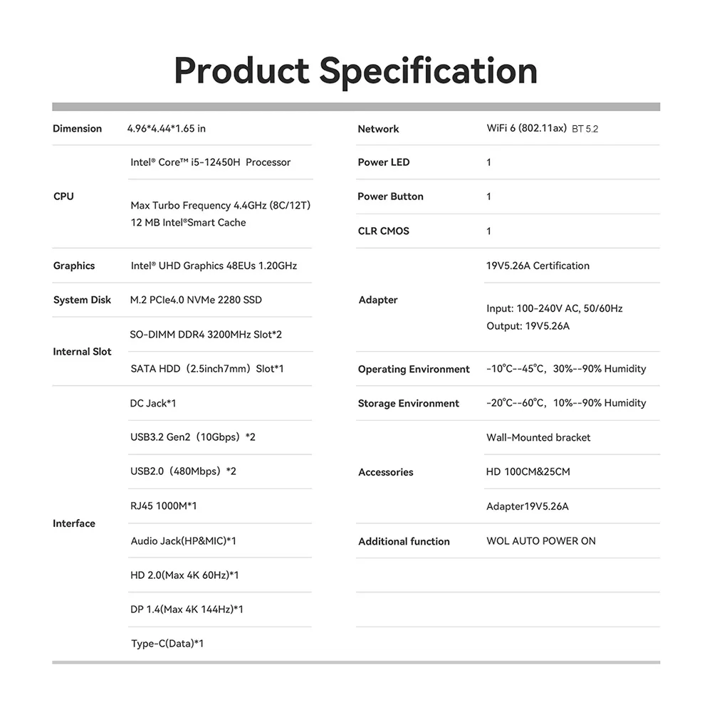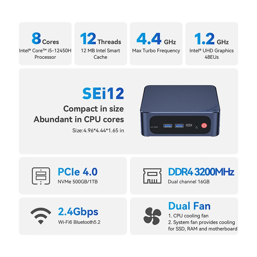 Comprar Beelink-Mini PC SEi12 12450H, Intel Core i5-12450H, 12th Gen DDR4 SSD, Wifi6 BT5.2 PCle4.0 SEi 12, ordenador de escritorio para juegos