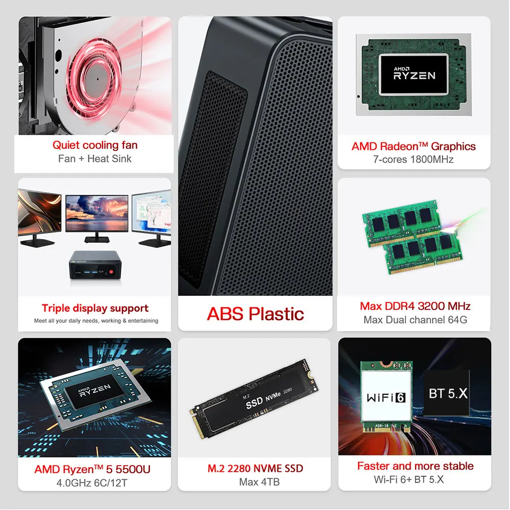 Beelink Mini PC SER3/5 AMD R3 3200U/R5 5500U/R7 6800U/6800H Mini ordenador