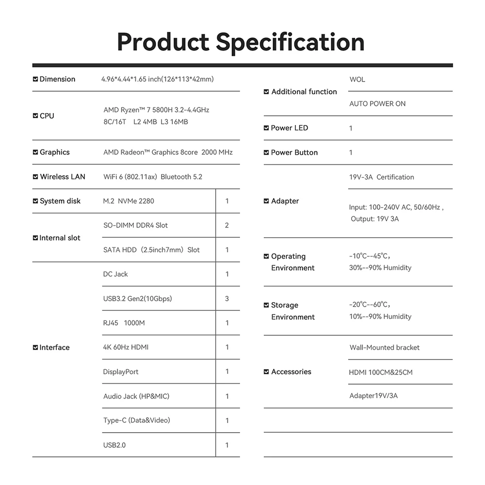 - Support: 1*RJ45 1000Mbps, WiFi 6E, BT5.2